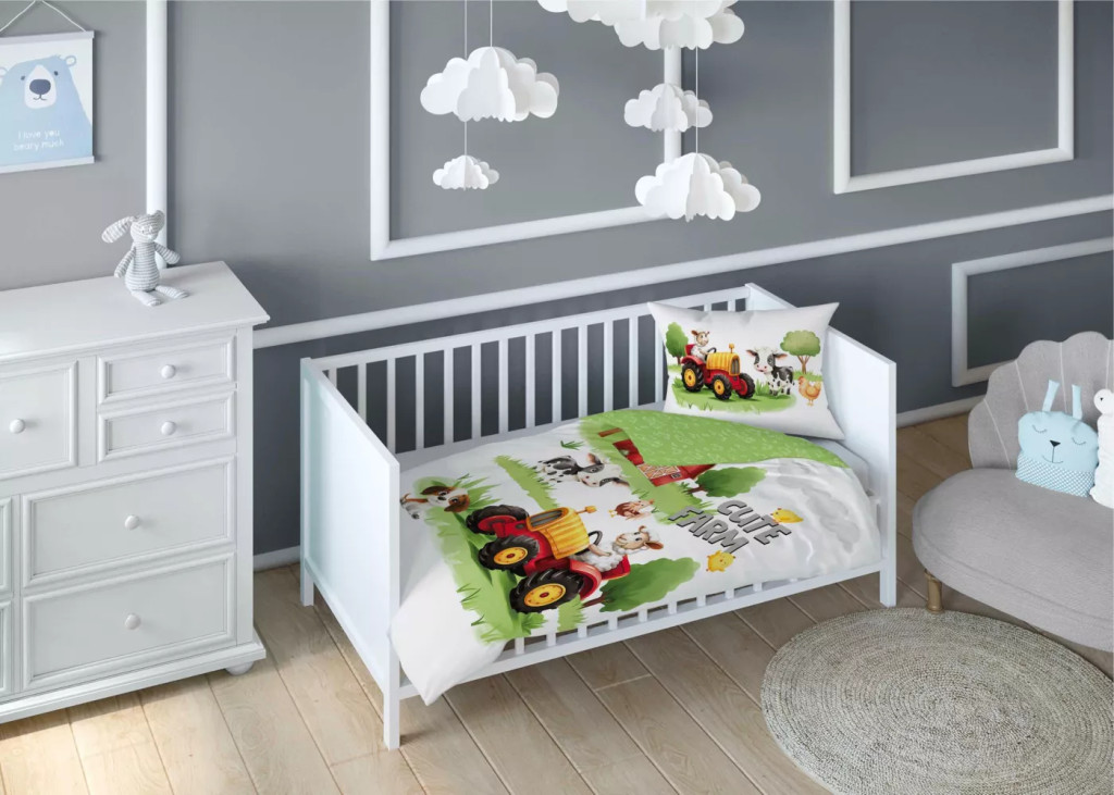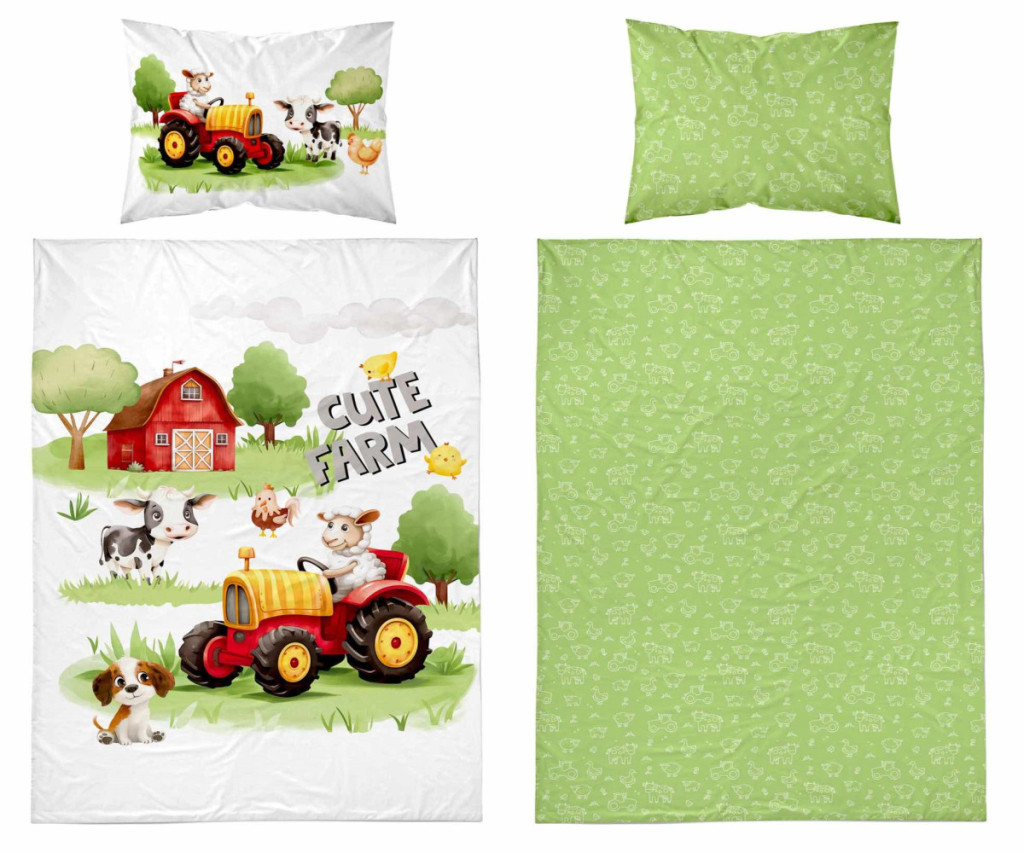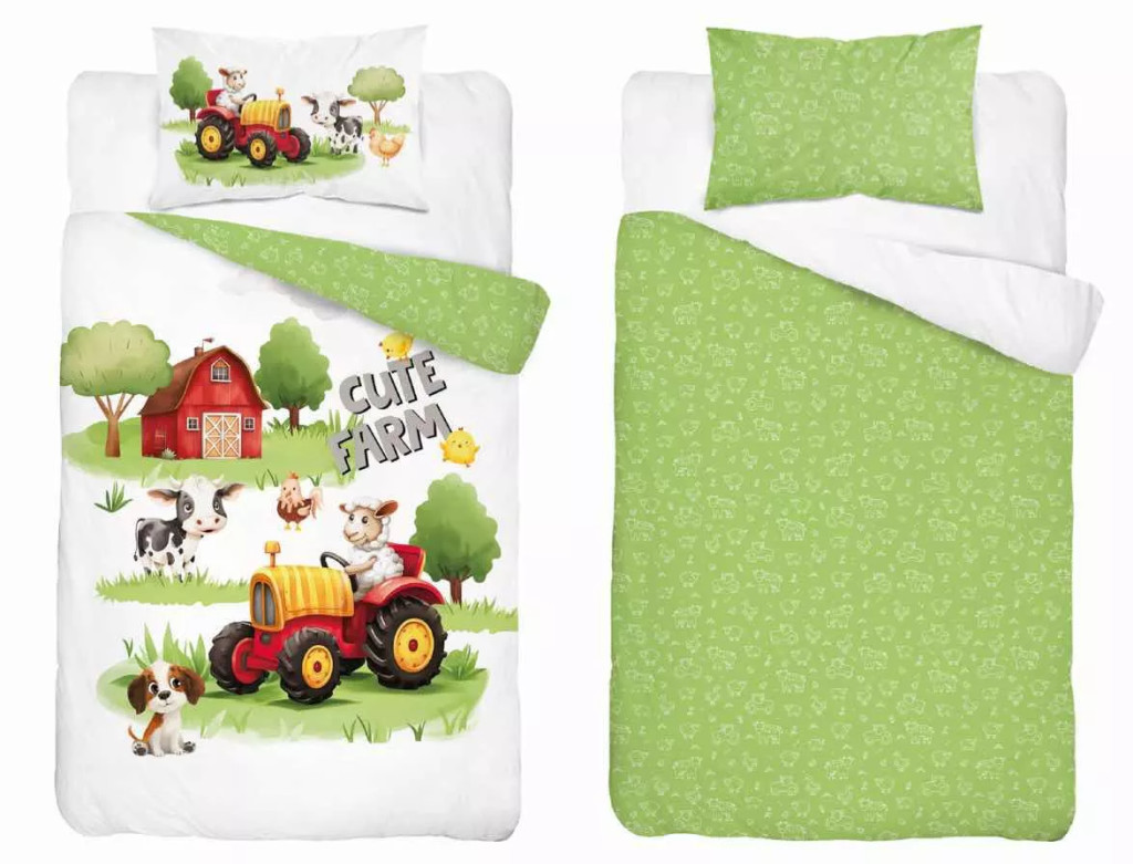 Pamut ágynemű huzat 100*135 cm - Cute Farm piros traktorral