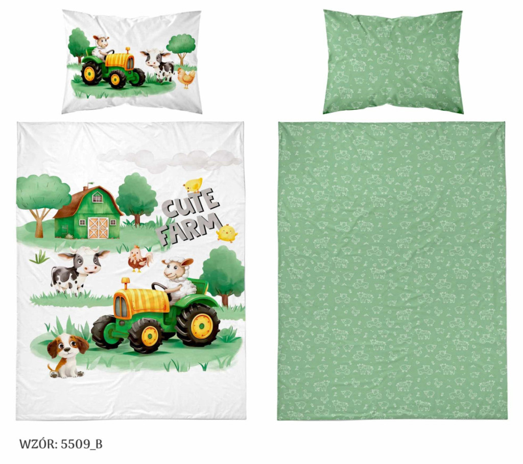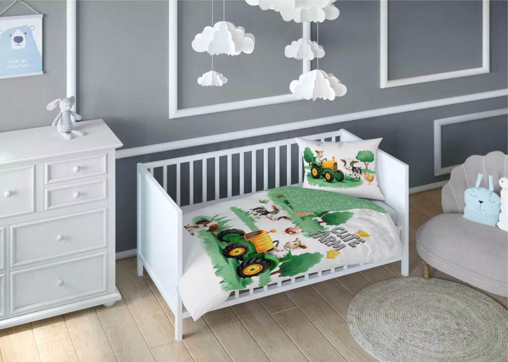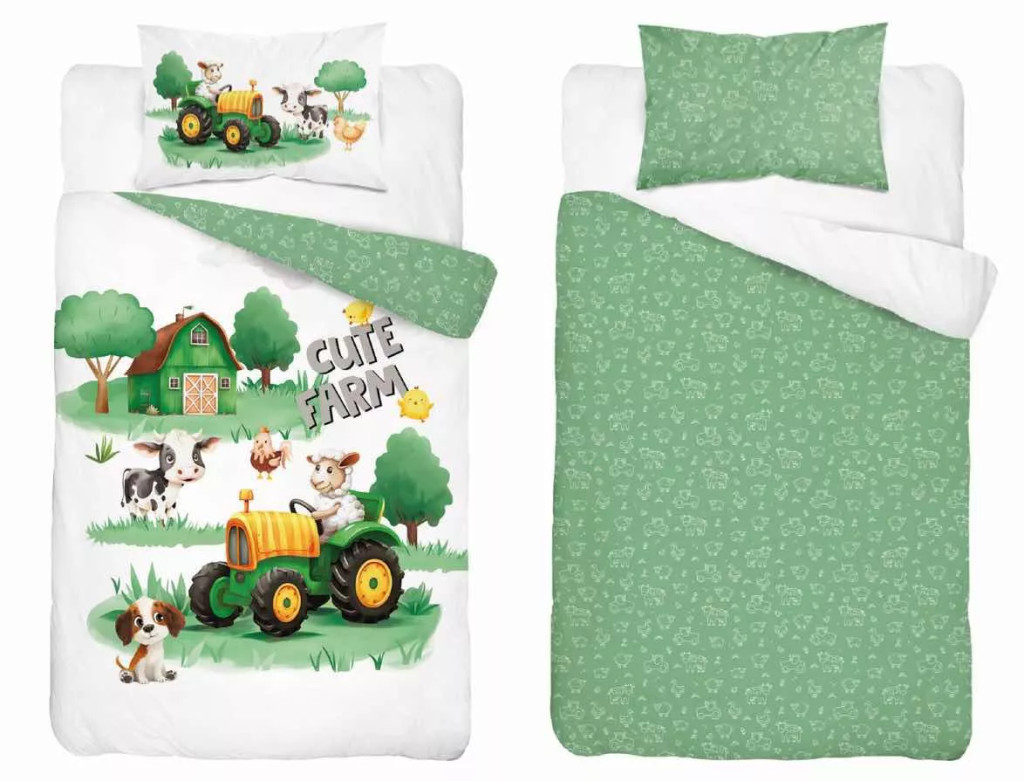 Pamut ágynemű huzat 100*135 cm - Cute Farm zöld traktorral
