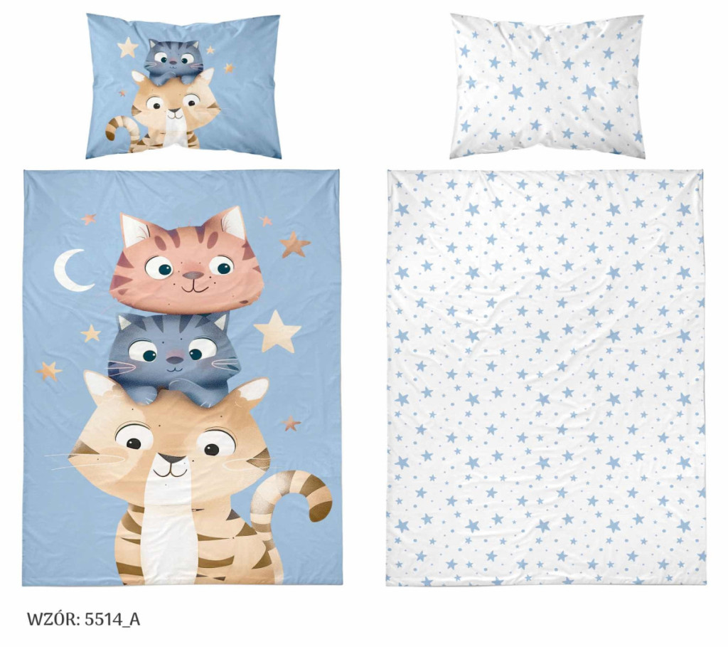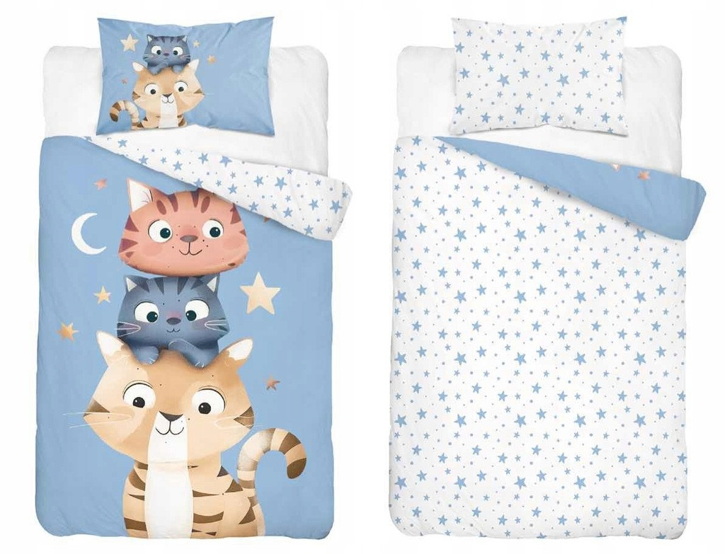 Pamut ágynemű huzat 90*120 cm - Cuki Cicák kék