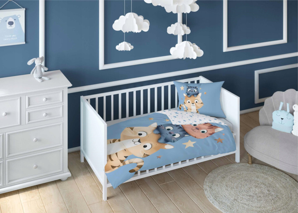 Pamut ágynemű huzat 100*135 cm - Cuki Cicák kék