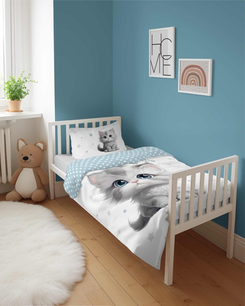 Pamut ágynemű huzat 90*120 cm - Cica kék