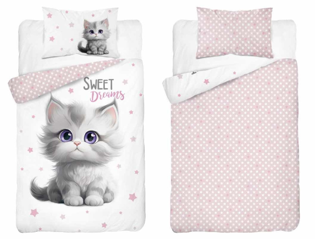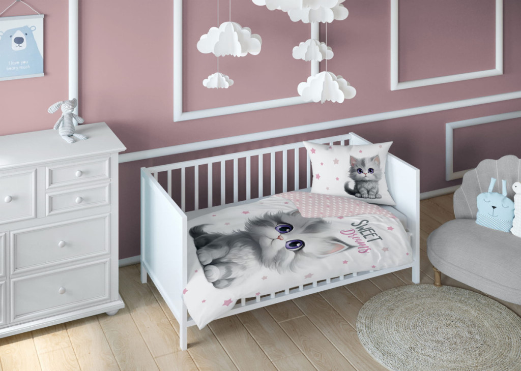Pamut ágynemű huzat 90*120 cm - Cica rózsaszín