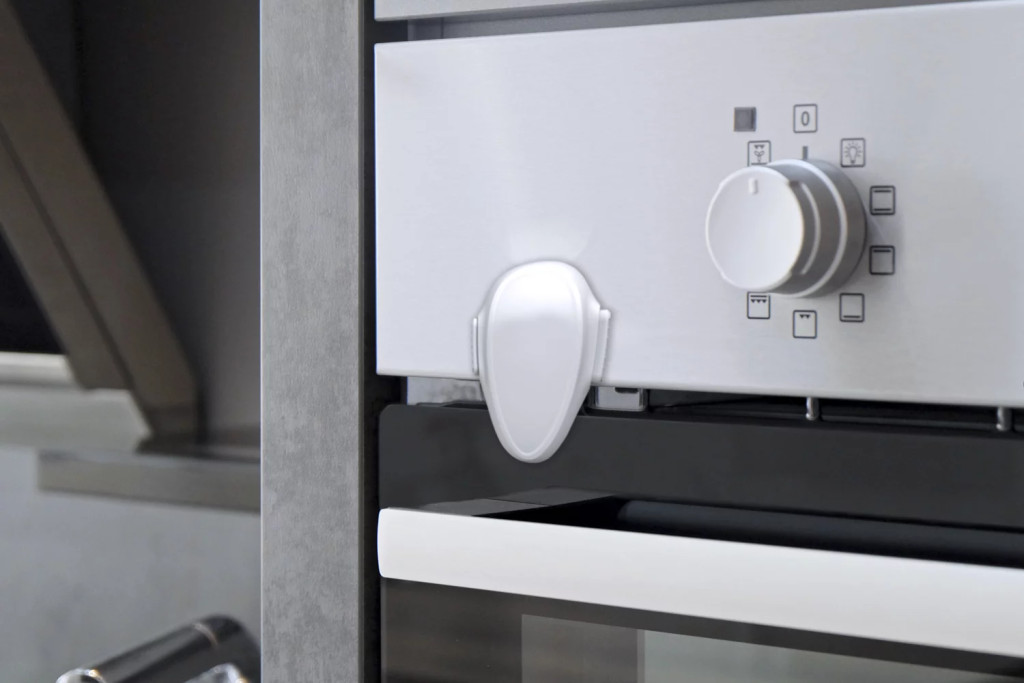 Zár a sütő ajtajának biztonságos zárásához, hogy megakadályozza a gyermekek sérülését.