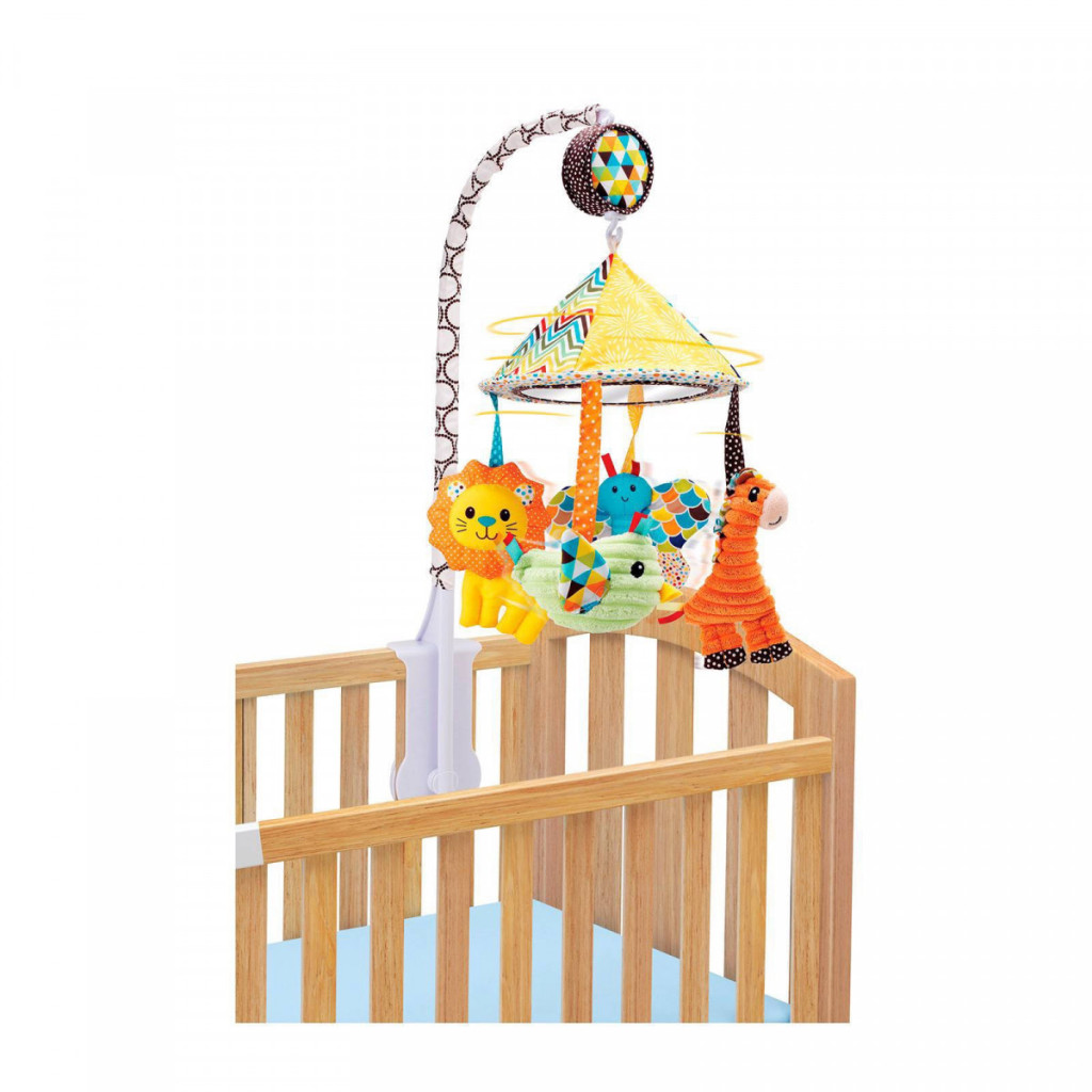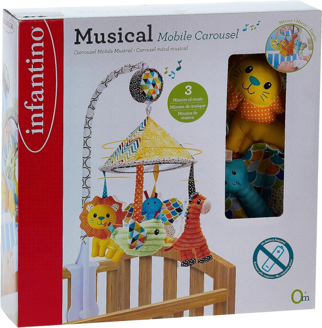 - lehetővé teszi a figurák folyamatos mozgásának és dallamának figyelését, ezáltal fejlesztve a baba látását és hallását