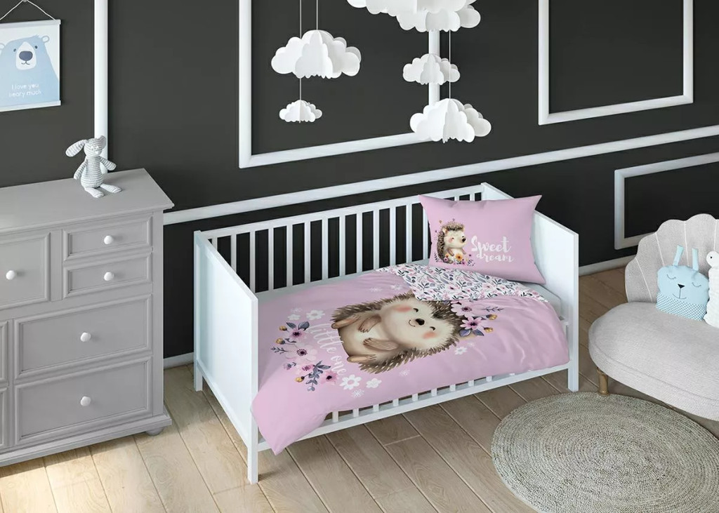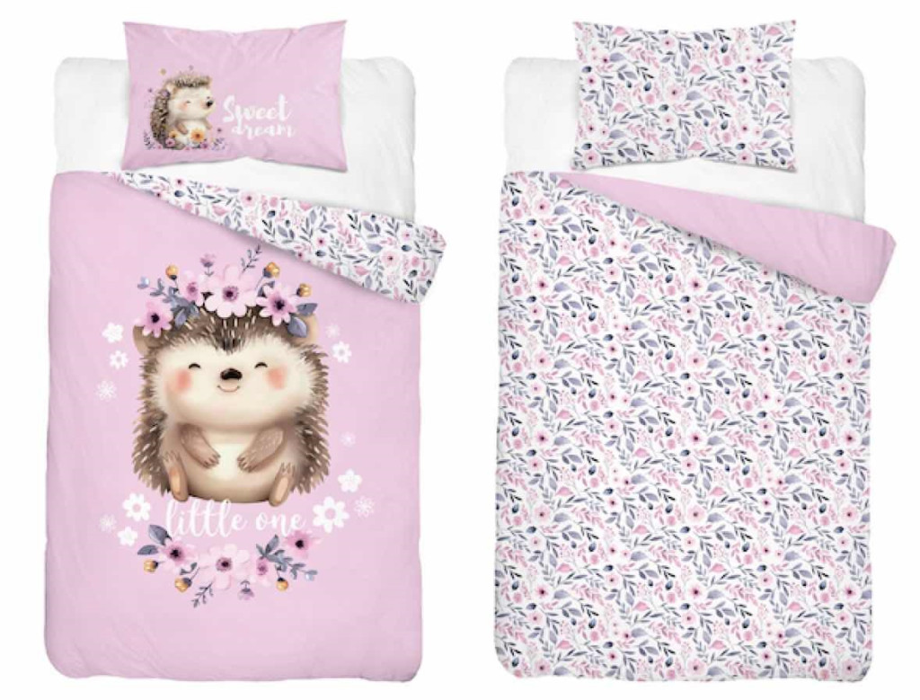 Pamut ágynemű huzat 100*135 cm - Süni rózsaszín