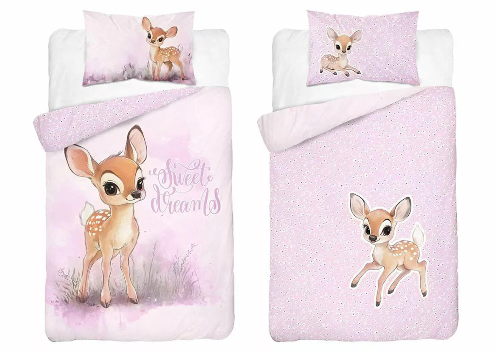 Pamut ágynemű huzat 100*135 cm - Őzike rózsaszín