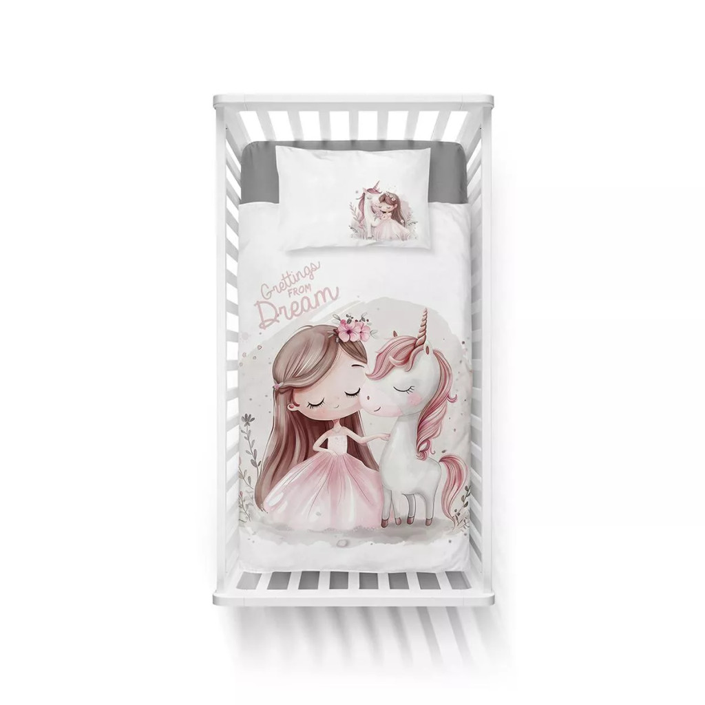 Pamut ágynemű huzat 100*135 cm - Egyszarvú rózsaszín