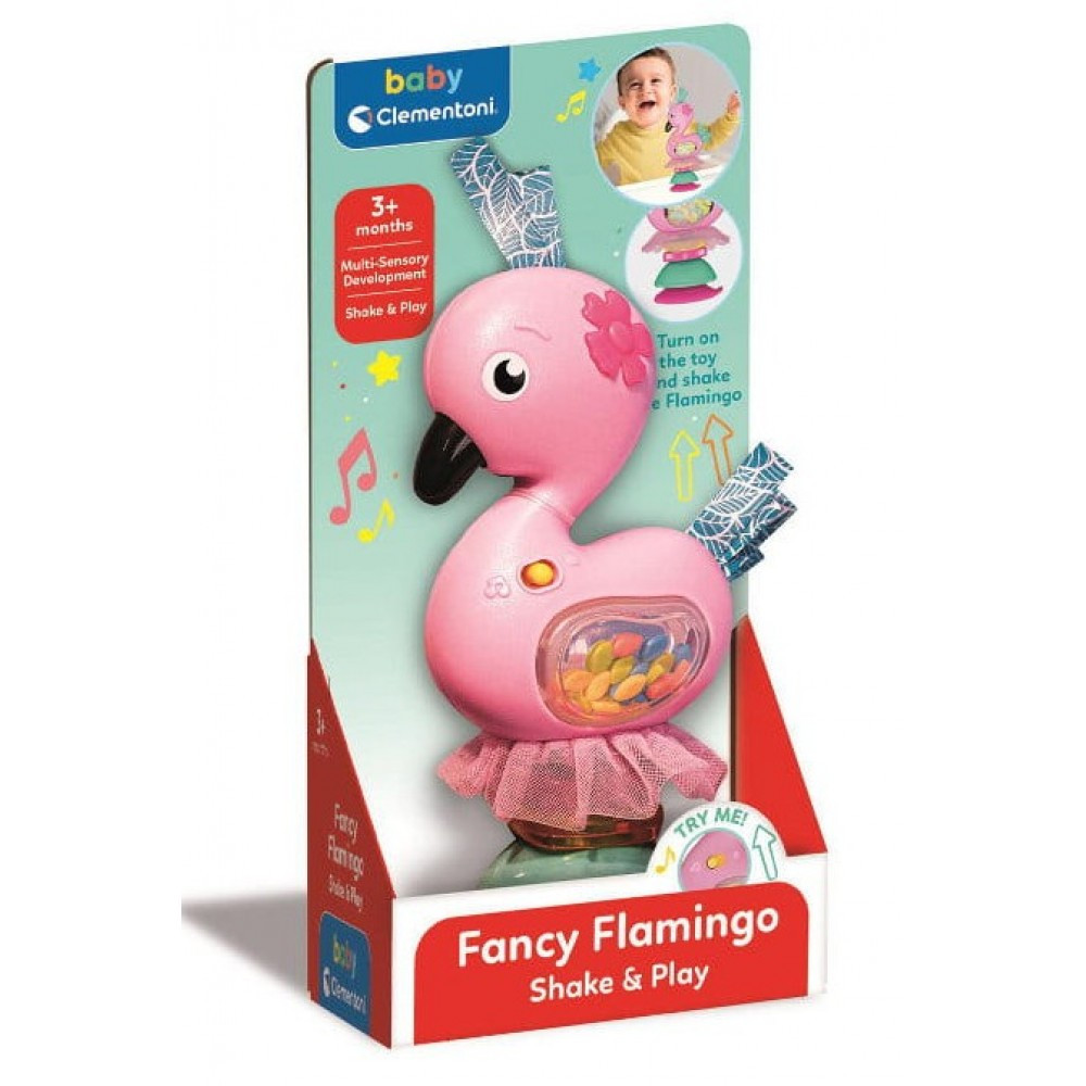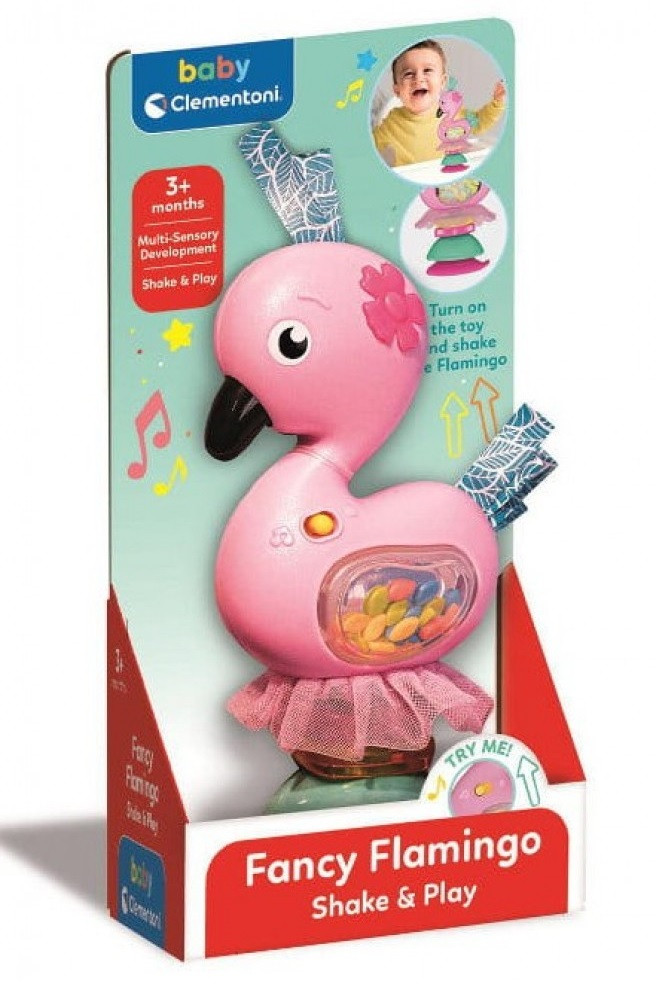 Varázsold vidámmá a babád játékidejét a Clementoni interaktív flamingó csörgővel, amely nemcsak cuki, hanem tele van fejlesztő funkciókkal is! Ez a színes, barátságos kis flamingó ideális választás már 3 hónapos kortól, hiszen egyszerre nyújt szórakozást és támogatja a picik érzékszervi fejlődését. A csörgő fényt és hangot ad ki, amikor a baba megrázza – ezáltal ösztönzi a kicsiket a felfedezésre és aktív mozgásra.