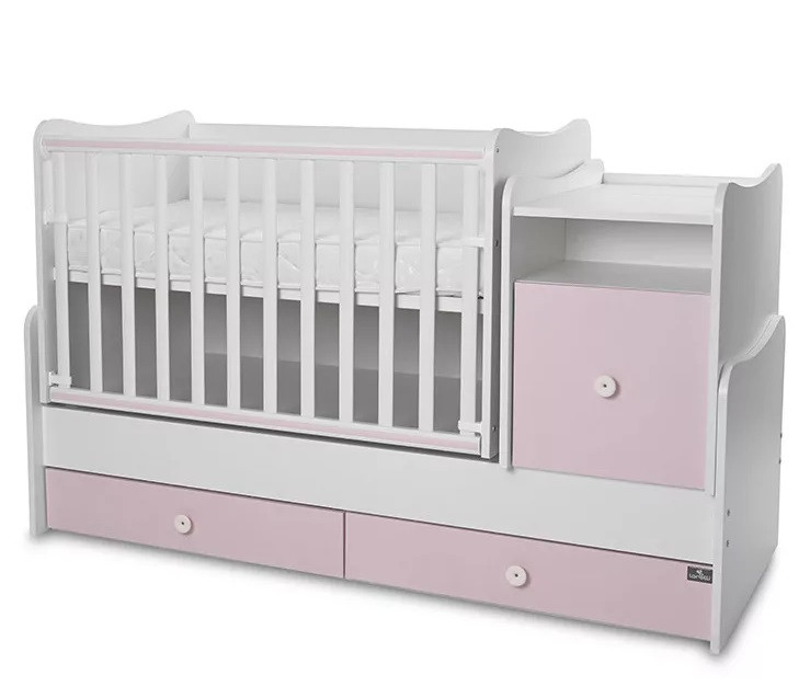 - Szuper megoldás, hogy a kiságy és a komód összetartozik, így nem kell két külön bútordarabot vásárolni. Amikor már nincs szükség rácsos kiságyra, a komód és a rácsok levételével egyszerűen át lehet alakítani ifjúsági heverővé és éjjeliszekrénnyé.