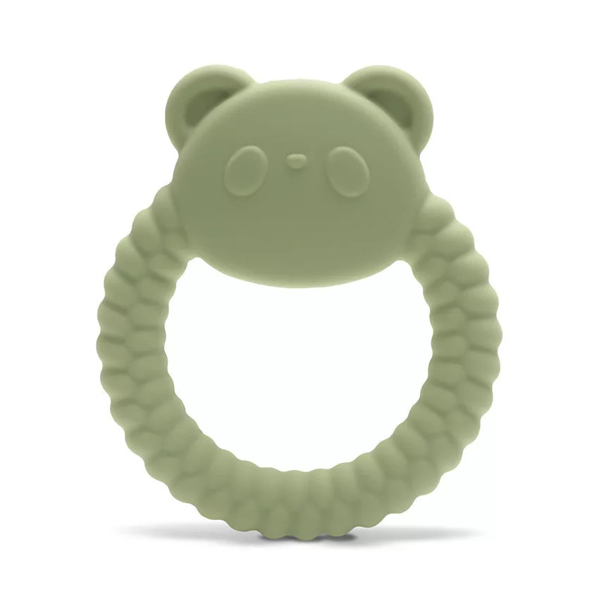 Pandát mintázó szilikon rágóka pasztell színben, amely a gyerekek kedvenc segítője lesz a fogzás időszakában.