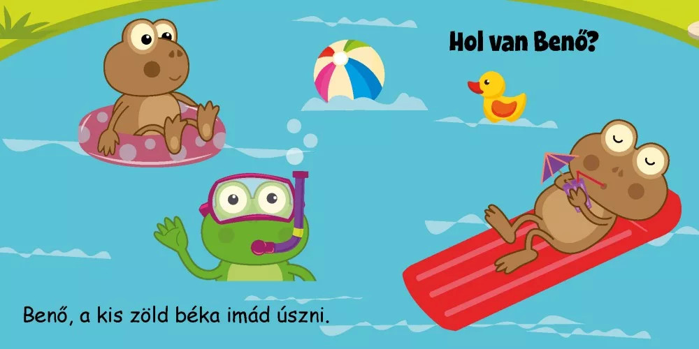 Puha könyv különböző animációs képekkel lett kifejlesztve, változtatja a színét a víz találkozásakor.  A képeken feltűnő színek segítenek a gyermekek érzékszerveinek és mozgásának kifejlesztésében. A tanulás és móka párosítása segíti a gyermek kedvét az új szavak és tárgyak tanulására és megjegyzésére. Kitűnő játék és első tankönyv. Használható mint játék a vízben.