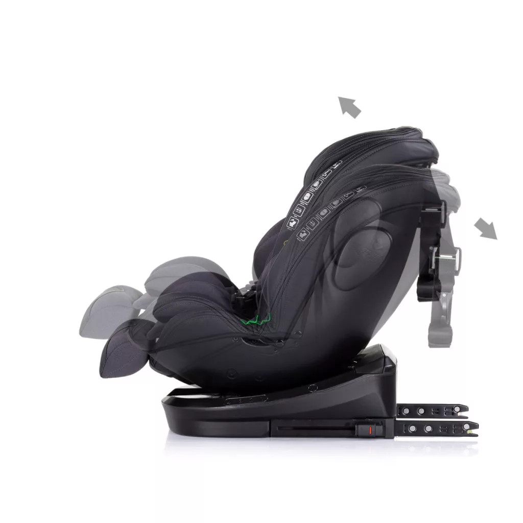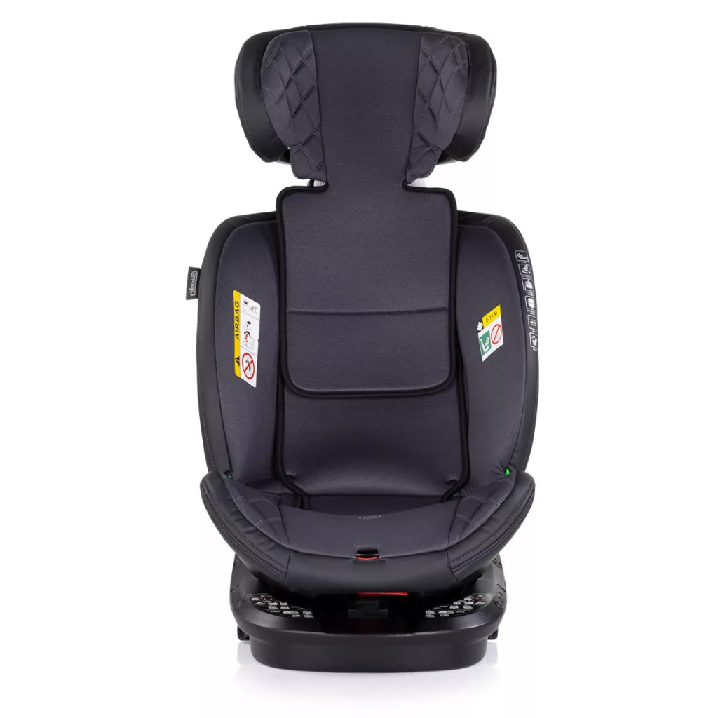 360 fokban forgatható autósülés, 40-150 cm-ig. Kiválóan párnázott autósülés, így már a legkisebbek is kényelmesen utazhatnak.