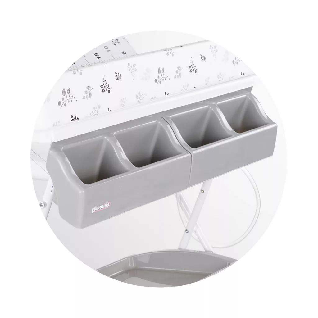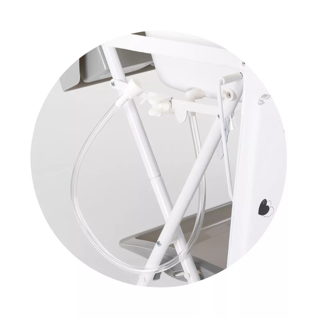 - Oldalára felszerelt tárolórekesznek köszönhetően minden fontos dolog kéznél lesz a fürdetéshez és pelenkázáshoz