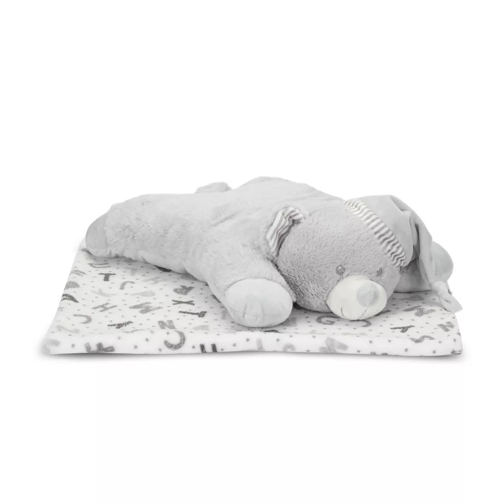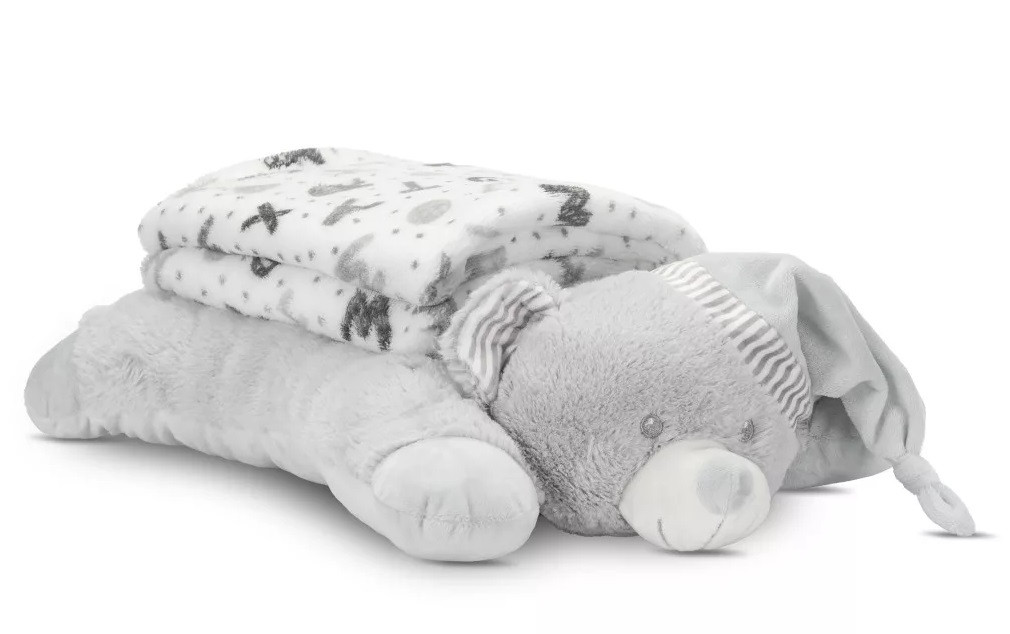 Lorelli Poffy Duo takaró 75x90 cm párnával 45x30 cm - White Grey Teddy Bear