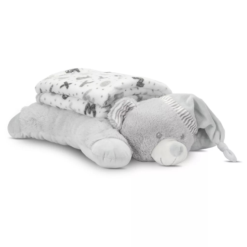 Pihe-puha takaró, aranyos állatos párnával. Tökéletes ajándék az újszülöttek számára, akár babaváróra.