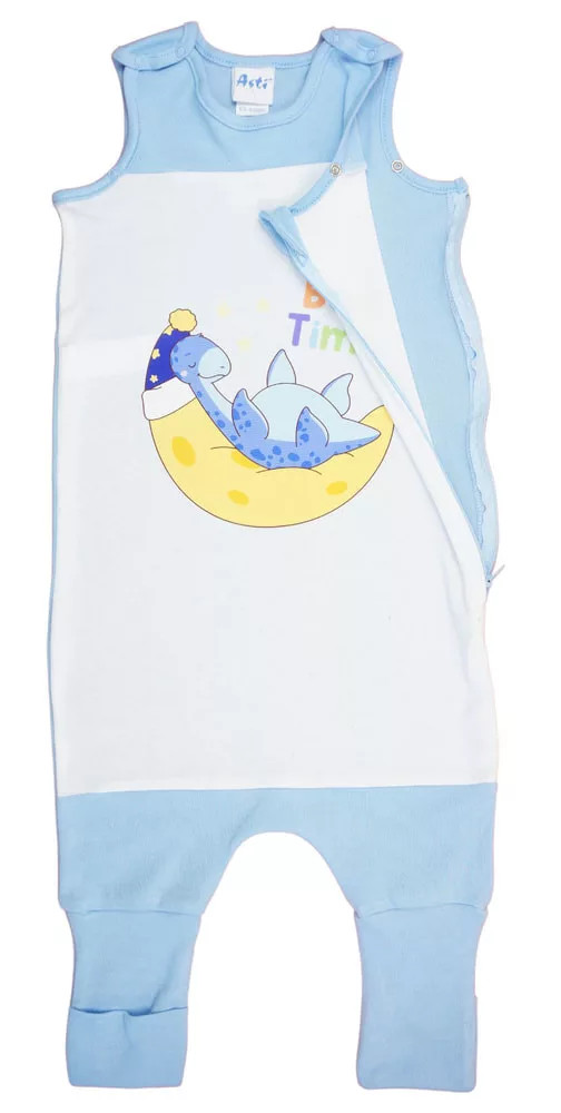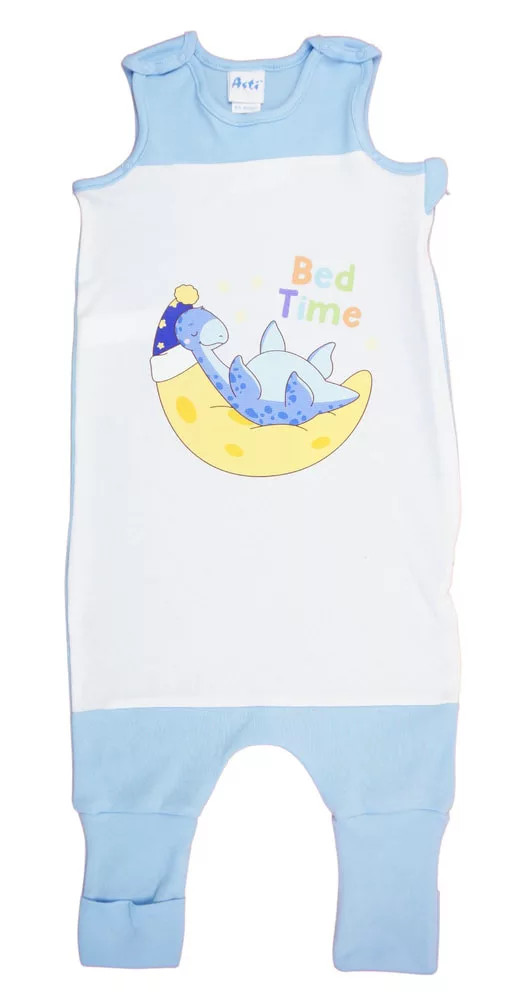 Egy igazi kis kalandra indulhat a gyermeked ezzel a gyönyörű, kék színű dínós mintával nyomott tipegő hálózsákkal.