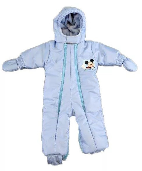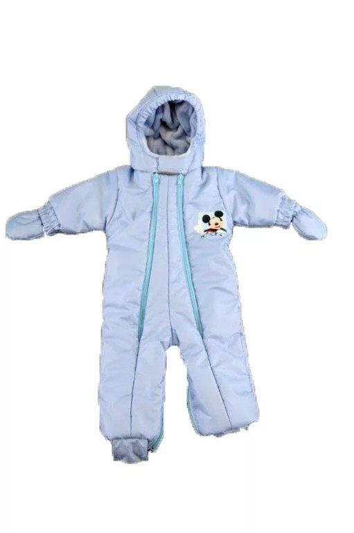 Mickey mintával nyomott, belül polár anyaggal bélelt, kapucnis, vízlepergetős, bundazsákká alakítható baba overál kesztyűvel.