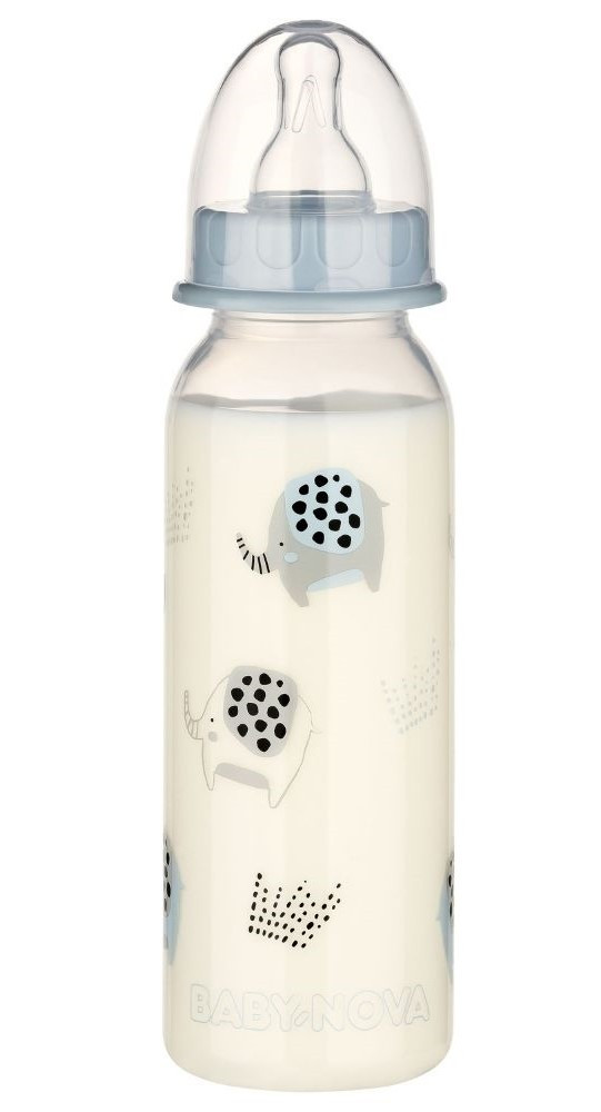 Baby-Nova cumisüveg 240 ml szilikon cumival M-es - elefánt