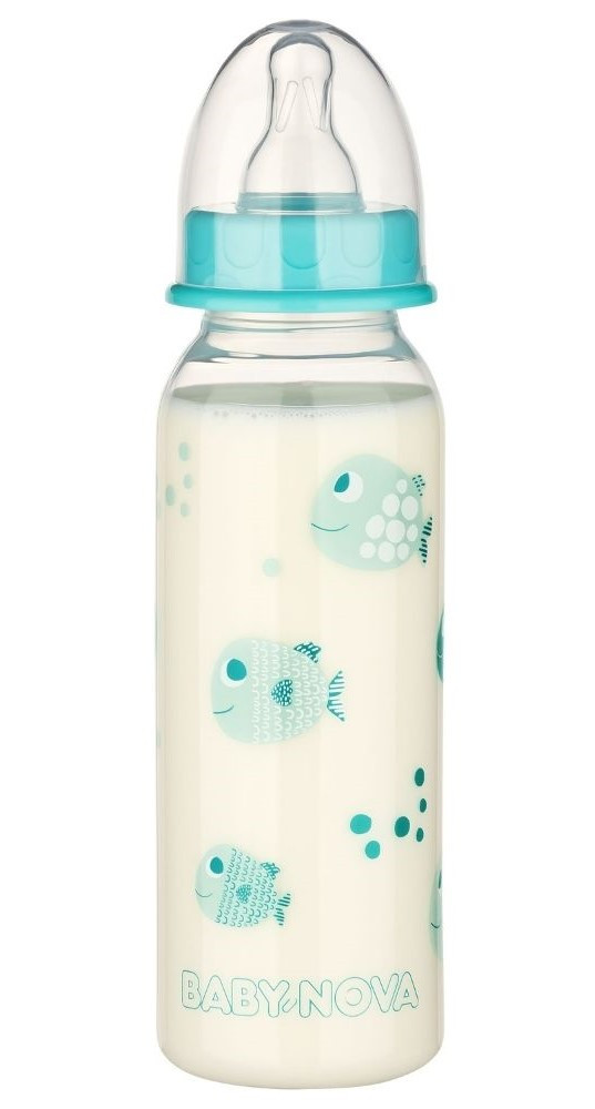 Baby-Nova cumisüveg 240 ml szilikon cumival M-es - halacska