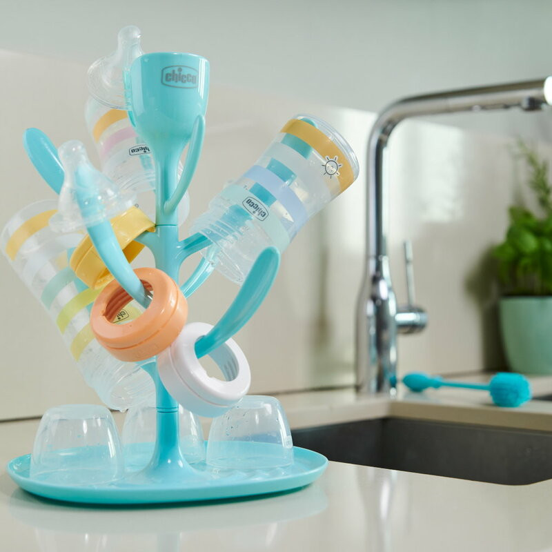 Ez a csúszásmentes aljzatú szárítóeszköz ideális megoldás a cumisüvegek és egyéb babakellékek tárolására és szárítására, lecsepegtetésére a mosogatás után.