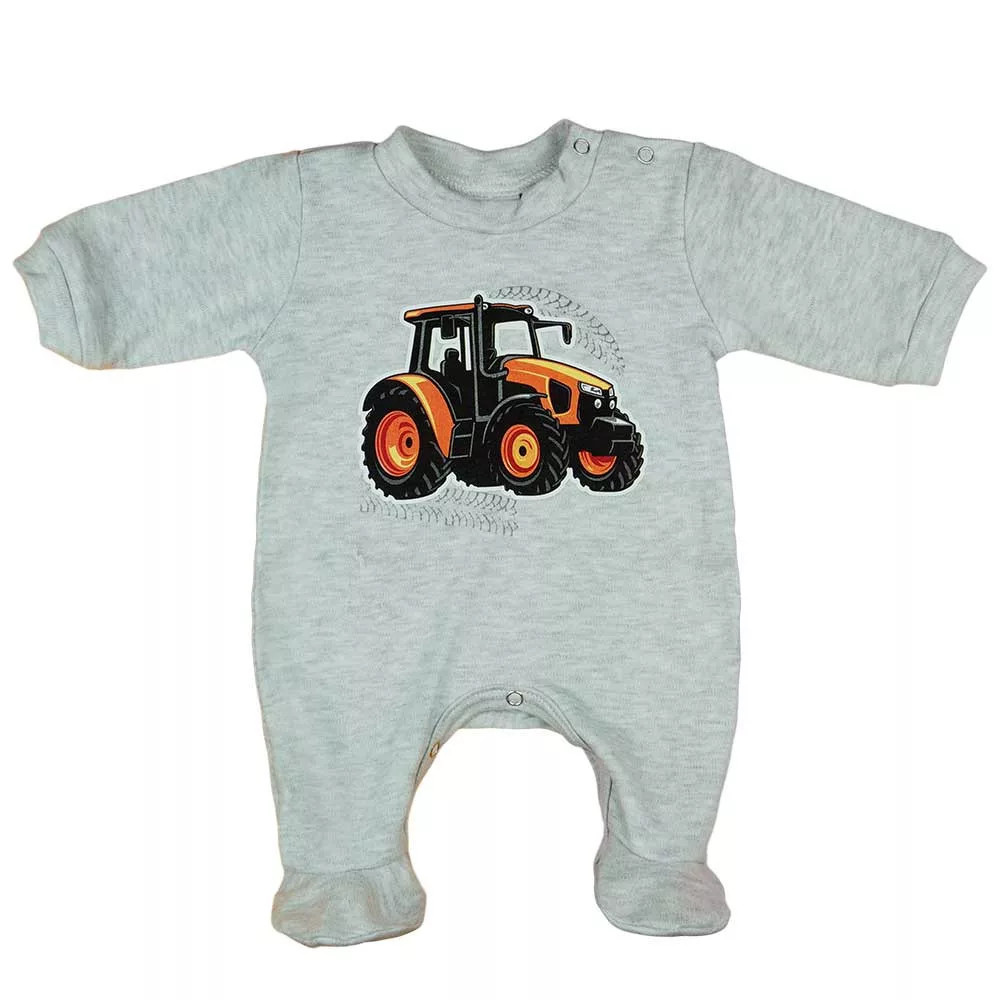 Hosszú ujjú belül bolyhos lábfej nélküli rugdalózó traktoros mintával - szürke (80)
