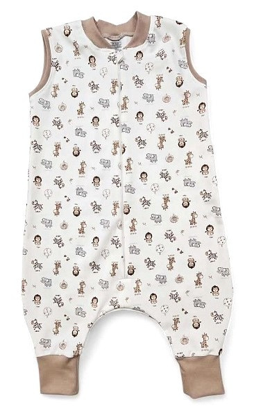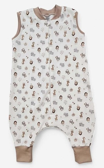 Mintás, elöl cipzáras, ujjatlan pamut tipegő hálózsák.