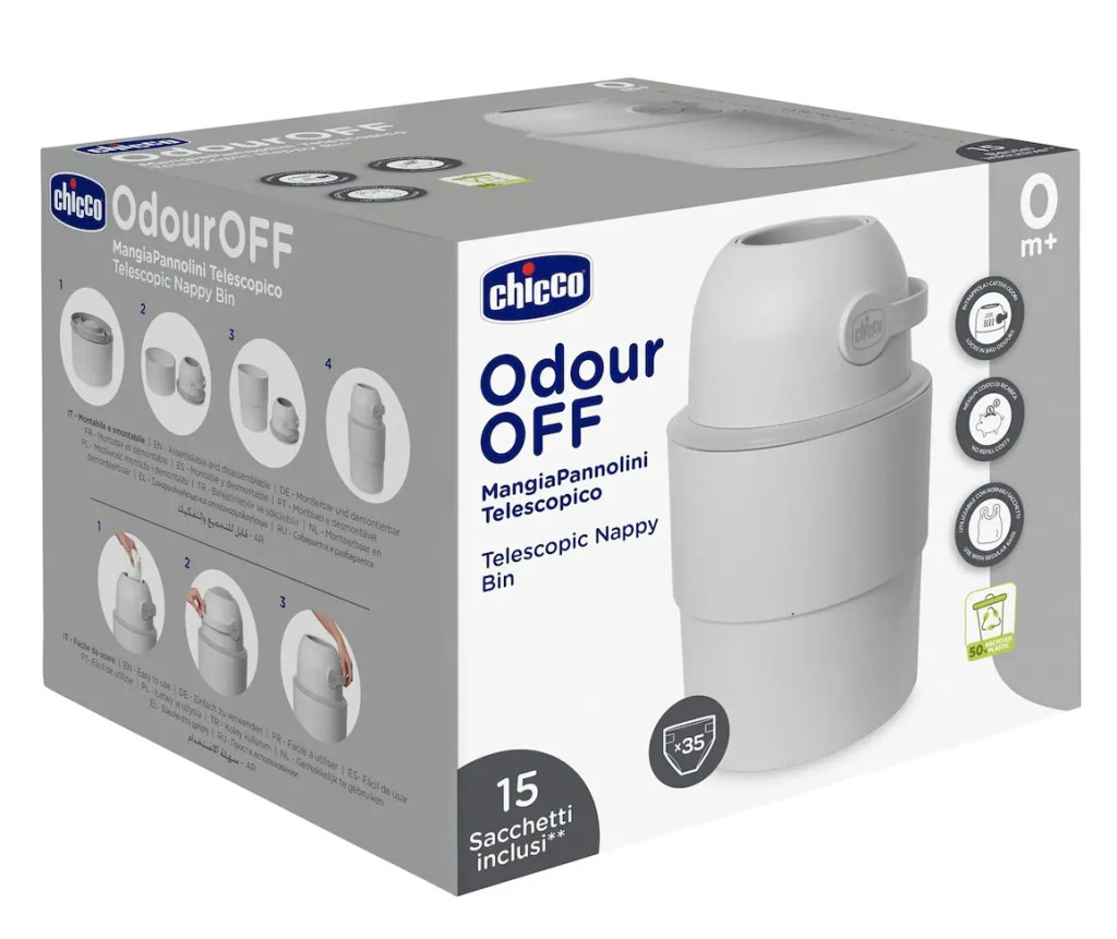 Az ODOUR OFF Chicco pelenkatartó a szabadalmaztatott szerkezetnek (WO 035249/2014) és az alkalmazott innovatív tömítéseknek köszönhetően megakadályozza a kellemetlen szagok kiszivárgását.