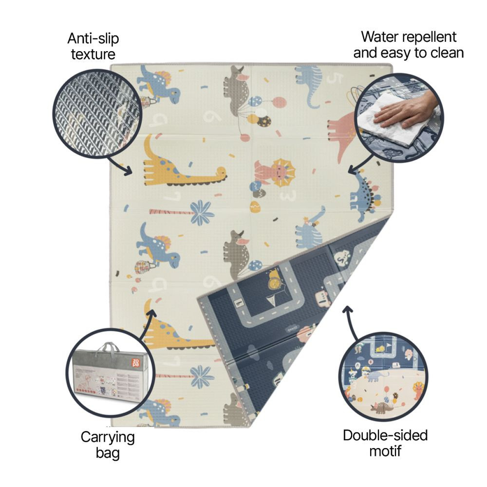 A puha, de kellően kemény hab megvédi a gyermeket a kemény padlótól és elnyeli az esések okozta ütéseket. A szőnyeg ideális teret teremt a mászáshoz, játékhoz és pihenéshez.