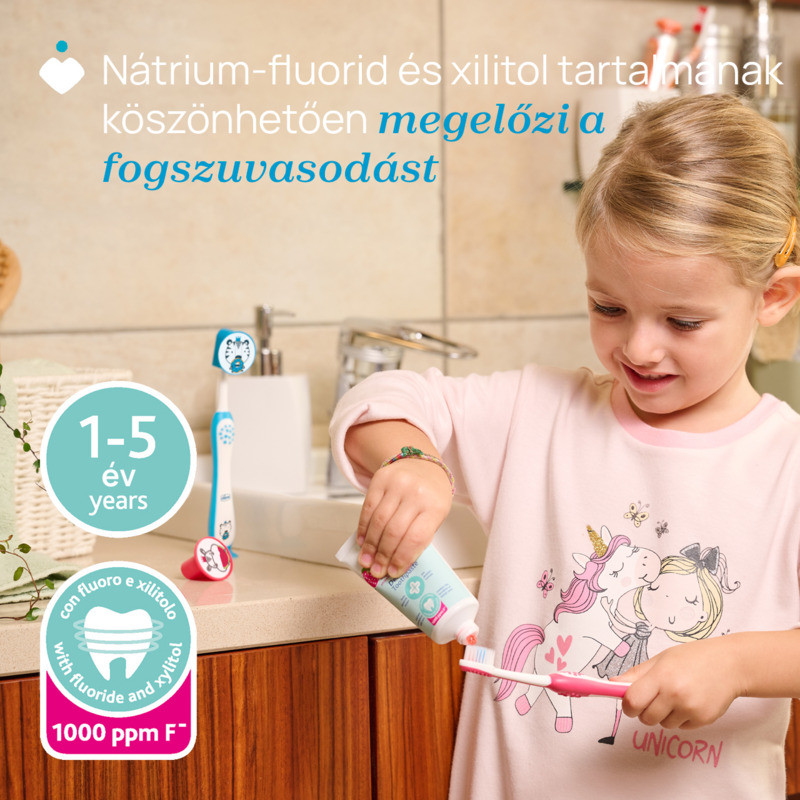 - Nem károsítja a tejfogakat, a nem dörzsölőformulának köszönhetően.