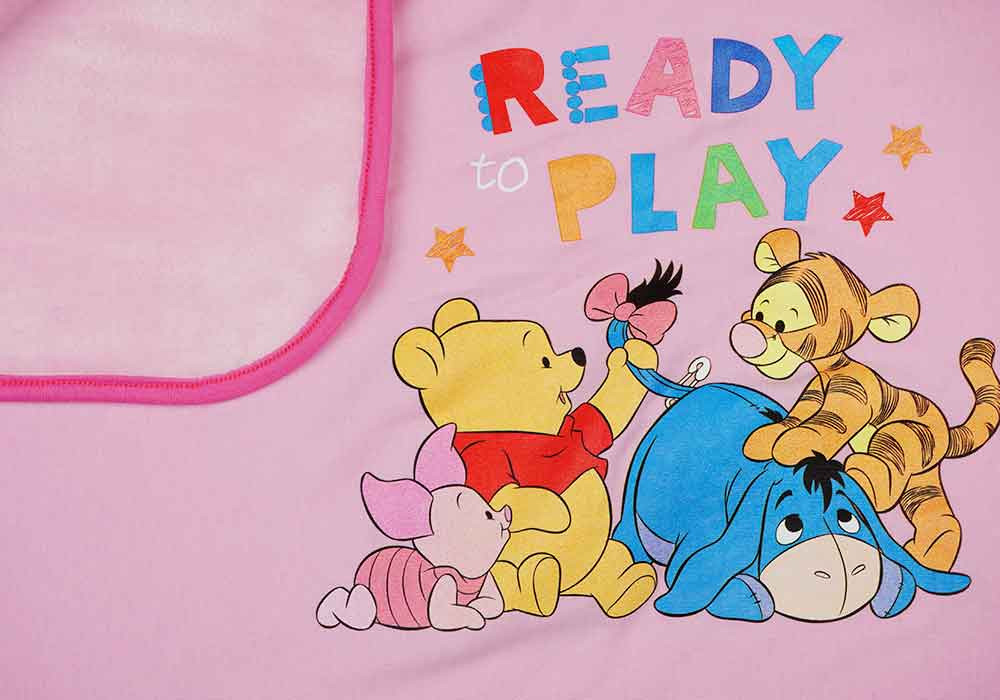 Pamut-wellsoft babatakaró Micimackó és barátai mintával nyomva.