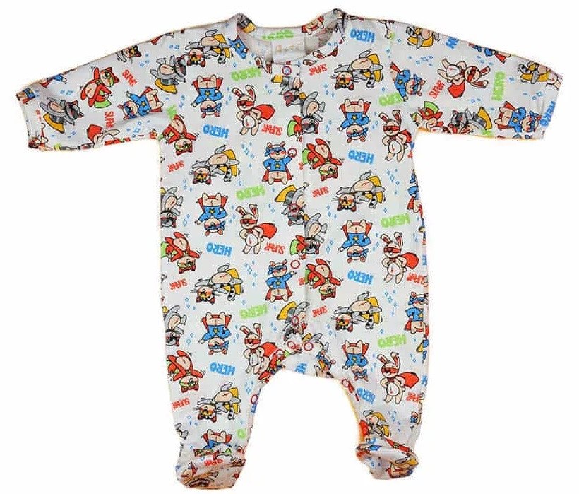 Hero mintás, elöl patentos hosszú ujjú baba rugdalózó.