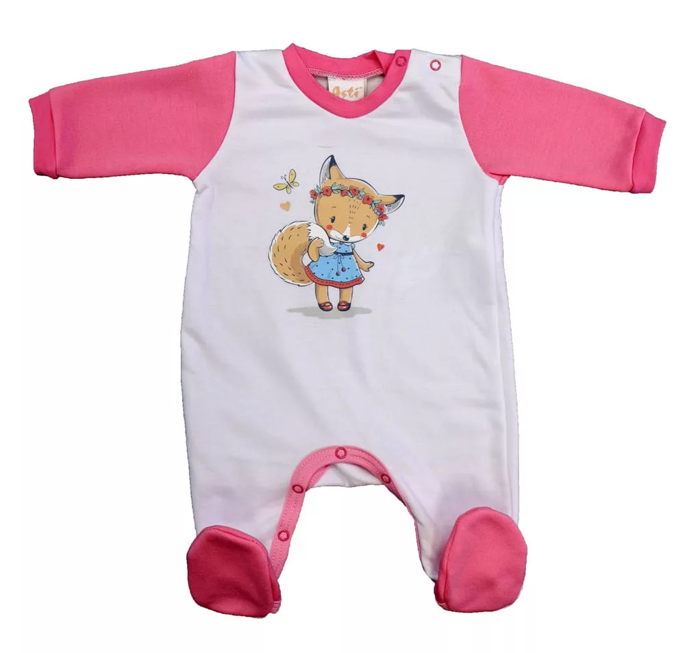 Szívdöglesztően cuki és kényelmes viselet kislányoknak ez a Rókalány mintás rugdalózó.
