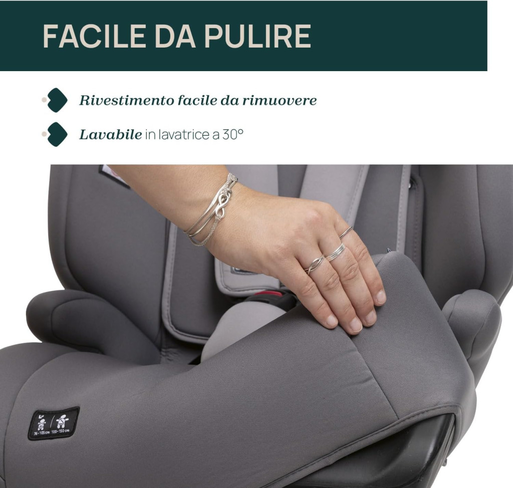 - 76-150 cm-ig (15 hó -12 év), övvel beköthető autósülés, így az isofix csatlakozóval nem rendelkező autókba is beköthető!