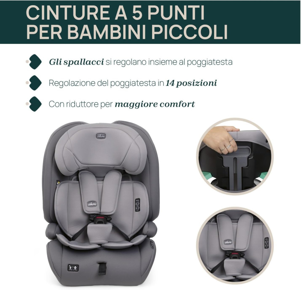 - 76 - 105 cm-ig (15 hó - 4 év, 1-es korcsoport): az ülést az autó 3 pontos biztonsági övével rögzítjük menetiránnyal megegyező irányban, a gyermeket az ülés 5 pontos övével kötjük be.