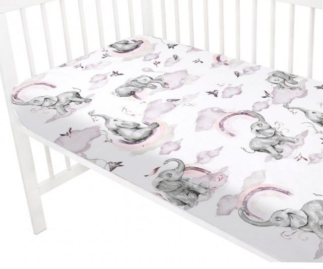 Baby Shop pamut,gumis lepedő 70*140 cm - Szivárványos elefánt rózsaszín