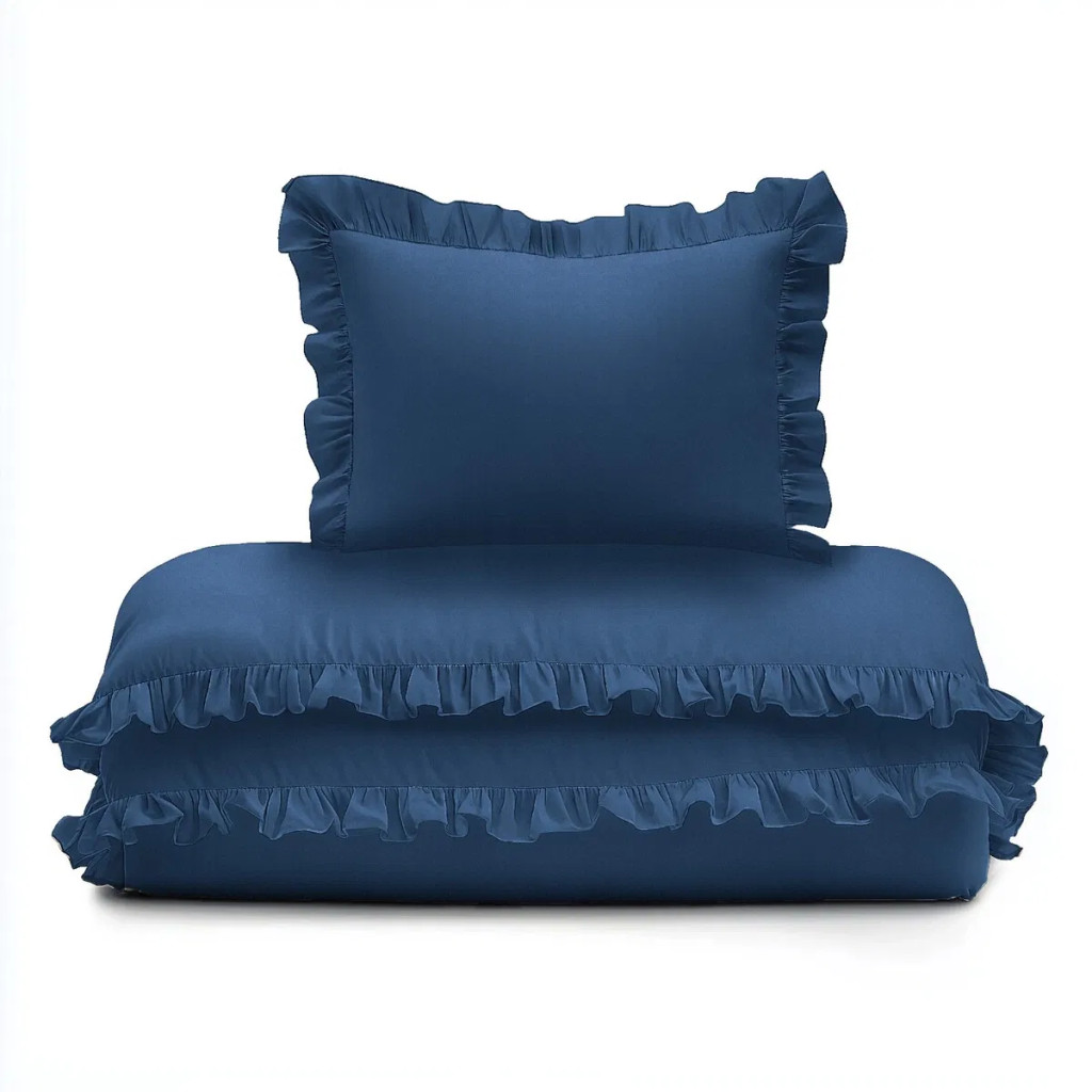 Pamut ágynemű huzat fodros 90*120 cm - Denim