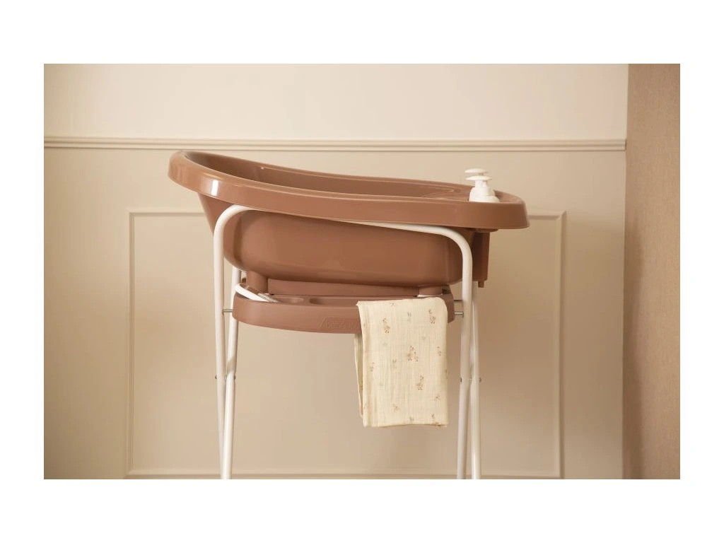 A kádállvány babakáddal, thermo babakáddal és fürdető dézsával egy tökéletes egységet alkotnak, amely nem hiányozhat a baba fürdetéséből. A bébé-jou babakád állvány magassága: 98 cm .  A kádállványban beépített szappantartó és törölközőre praktikusan kialakított rés található, amelyeket az anyukák nagyon tudnak értékelni. Biztonságosságát a legnagyobb műszaki vizsgát végző cég tanúsítja.