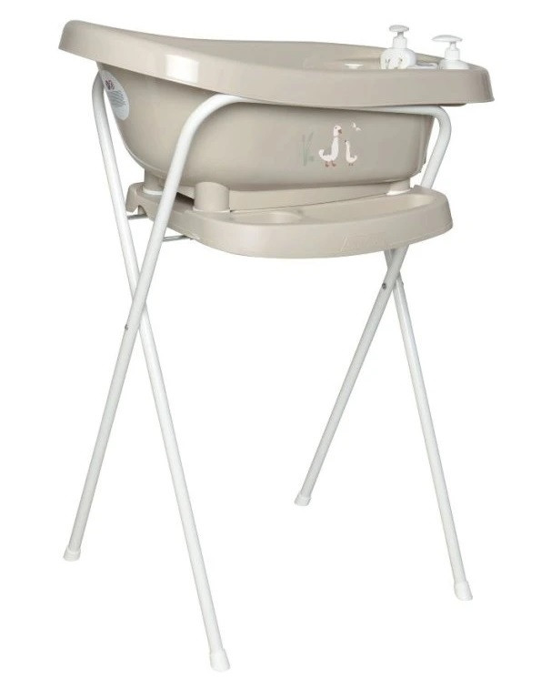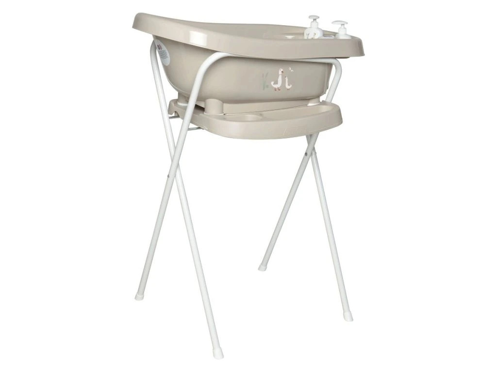 A kádállvány babakáddal, thermo babakáddal és fürdető dézsával egy tökéletes egységet alkotnak, amely nem hiányozhat a baba fürdetéséből. A bébé-jou babakád állvány magassága: 98 cm .  A kádállványban beépített szappantartó és törölközőre praktikusan kialakított rés található, amelyeket az anyukák nagyon tudnak értékelni. Biztonságosságát a legnagyobb műszaki vizsgát végző cég tanúsítja.