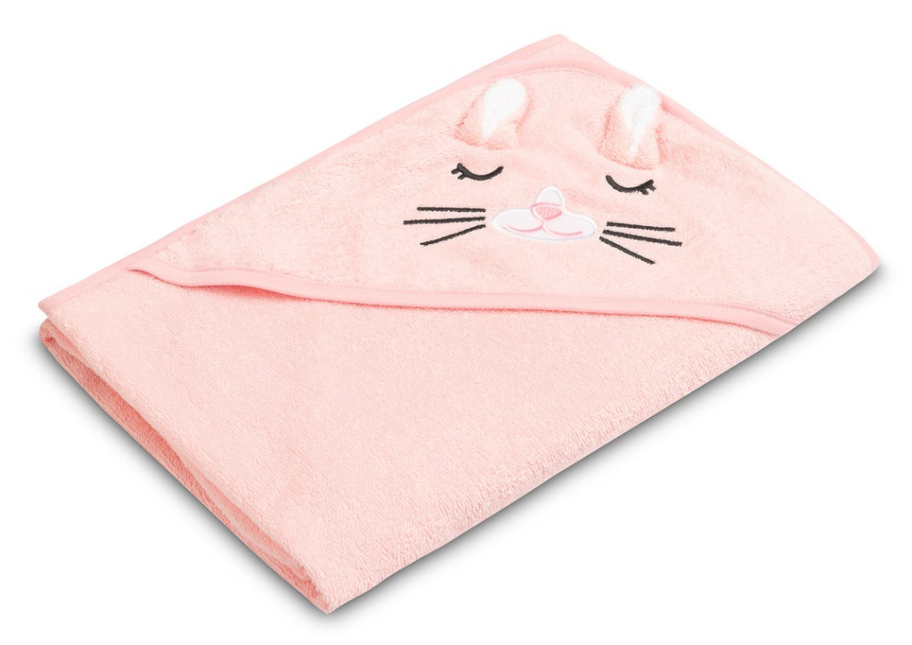 Kapucnis fürdőlepedő 100*100 cm - rózsaszín nyuszi