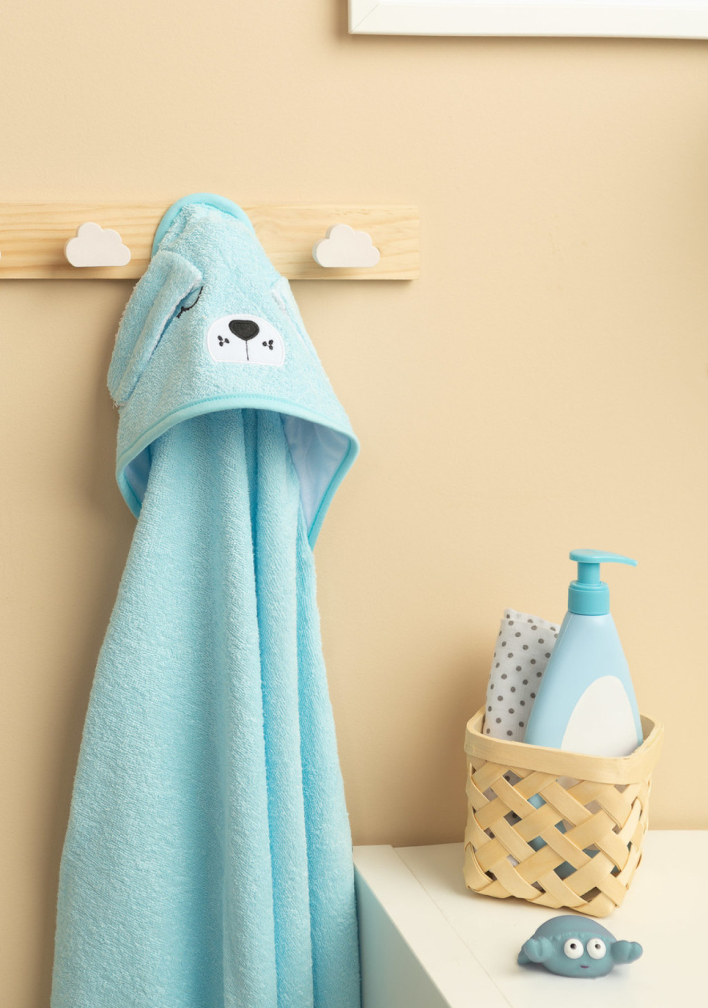 Kapucnis fürdőlepedő 100*100 cm - kék kutya