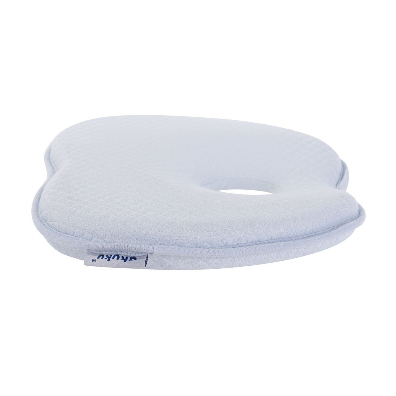 A párna speciális formájú, így a baba feje alatt egyenletesebben oszlik el a nyomás, gerince megfelelő helyzetben és egyvonalban marad.
