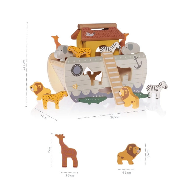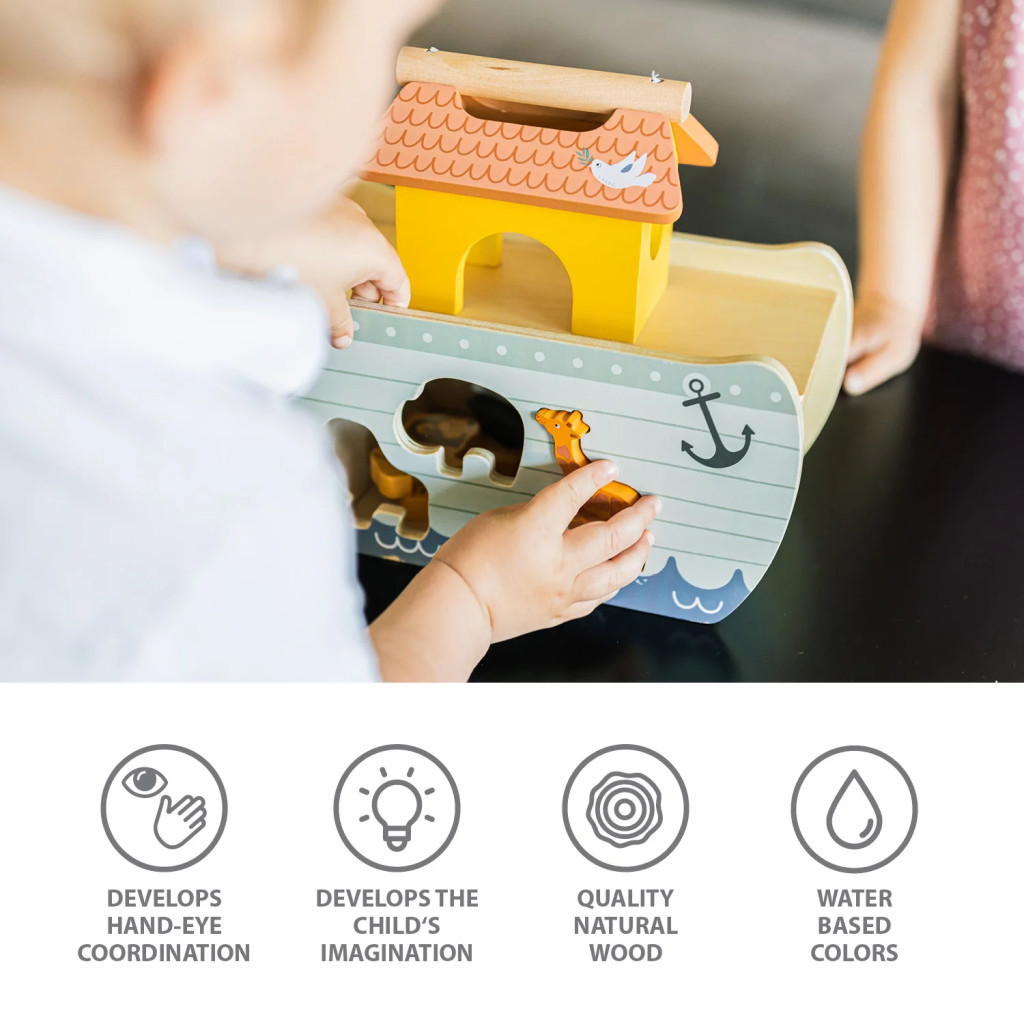 Engedd, hogy kis kalandorod megmentse az állatvilágot, akárcsak Noé és a bárka bibliai történetében. A fából készült puzzle fejleszti a szem-kéz koordinációt, a logikus gondolkodást, a képzelőerőt és megtanítja az állatok felismerésére.