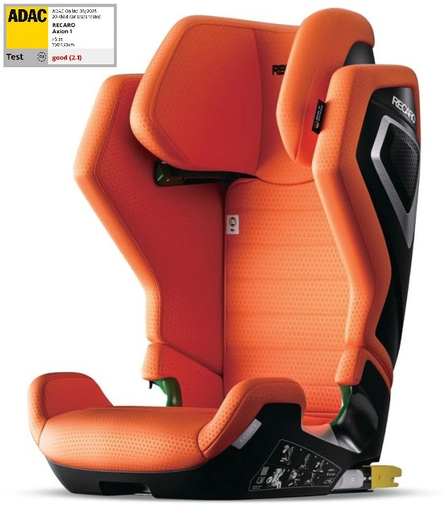 A német Recaro cég vadonatúj Axion 1 gyerekülése kényelmével, tágasságával és alacsony súlyával tűnik ki. Egyedülálló kialakítása a divatos Vibrant Orange színnel kombinálva kifejezi a felhasznált anyagokat és az innovációt a biztonság terén. 100-150 cm-es gyerekeknek, ami kb. 3-12 éves kornak felel meg, maximális védelmet és kiváló kényelmet nyújt a leghosszabb utakon is. Alacsony a súlya és nagyon könnyen felszerelhető menetirányban.