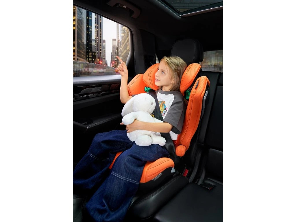 - Rugalmas ergonómia. A fejtámla puha, vibrációelnyelő, memóriahabból készült, így optimális tartást és kényelmet biztosít a fejnek és a nyaknak. A háttámla dőlésszöge állítható, hogy támogassa a gyermek gerincének egészségét, és kompatibilis a jármű bármely ülésével. Az üléspárna párnázottsága növeli a gyermekek kényelmét a medence területén hosszú utazások során.