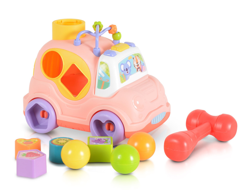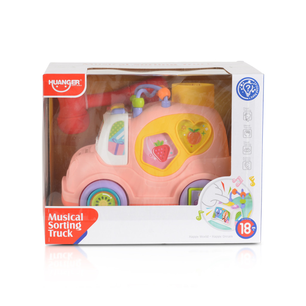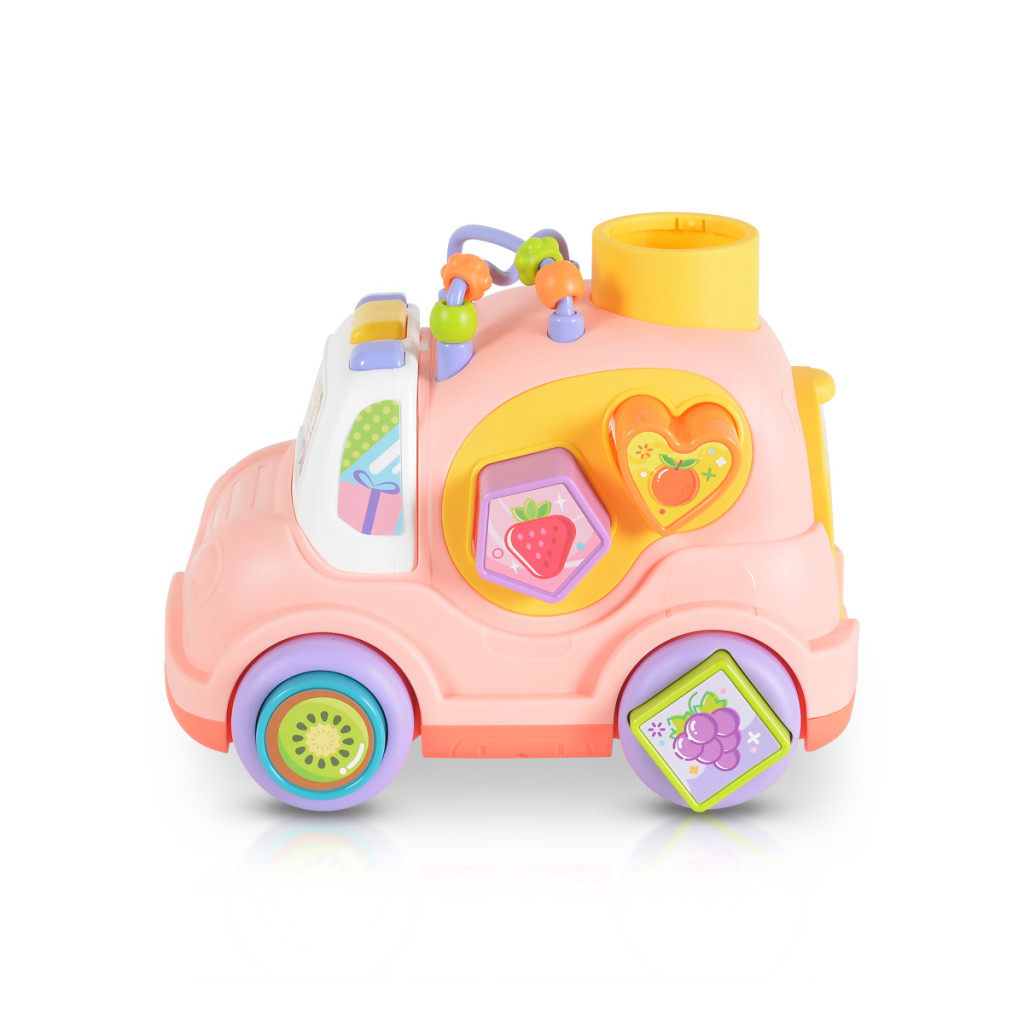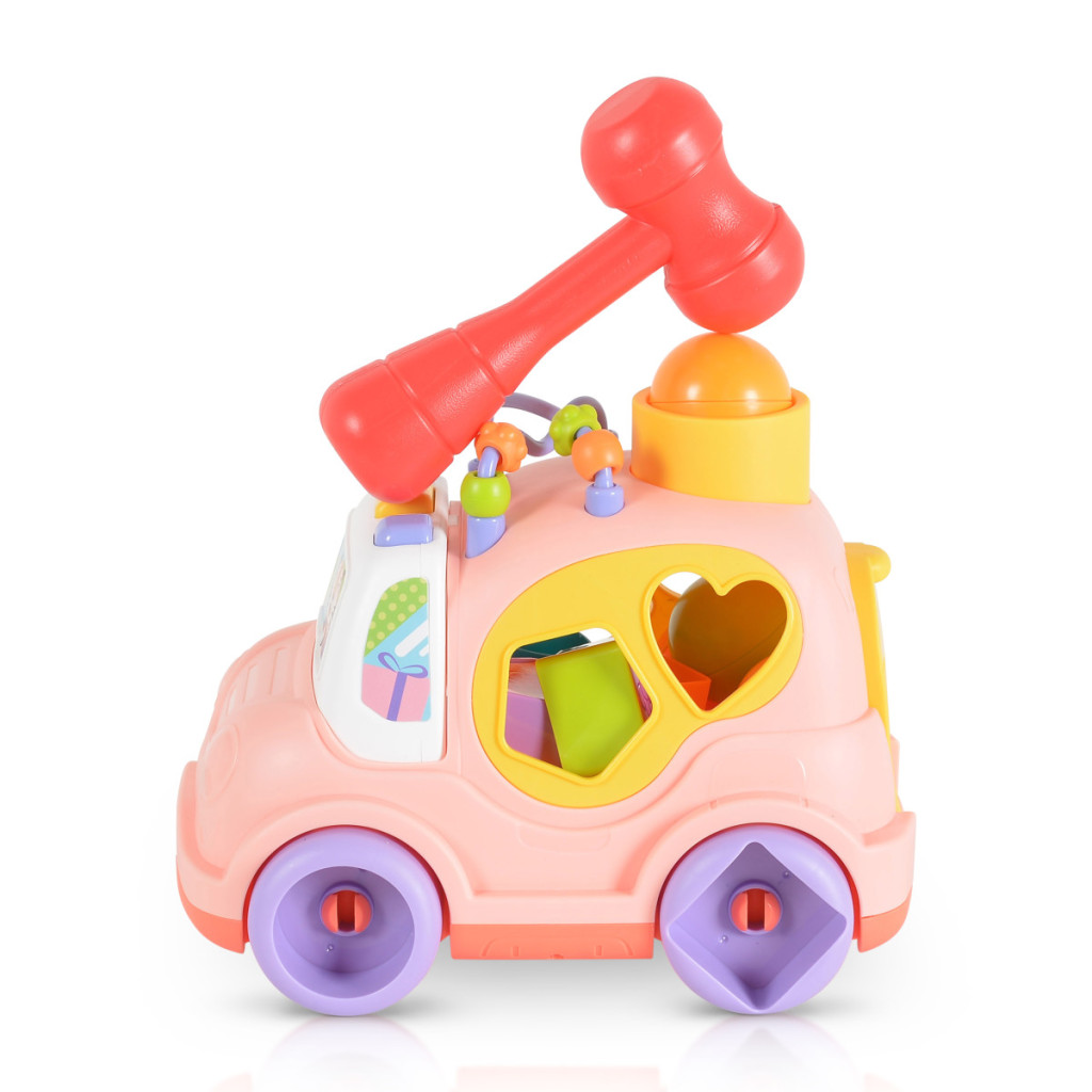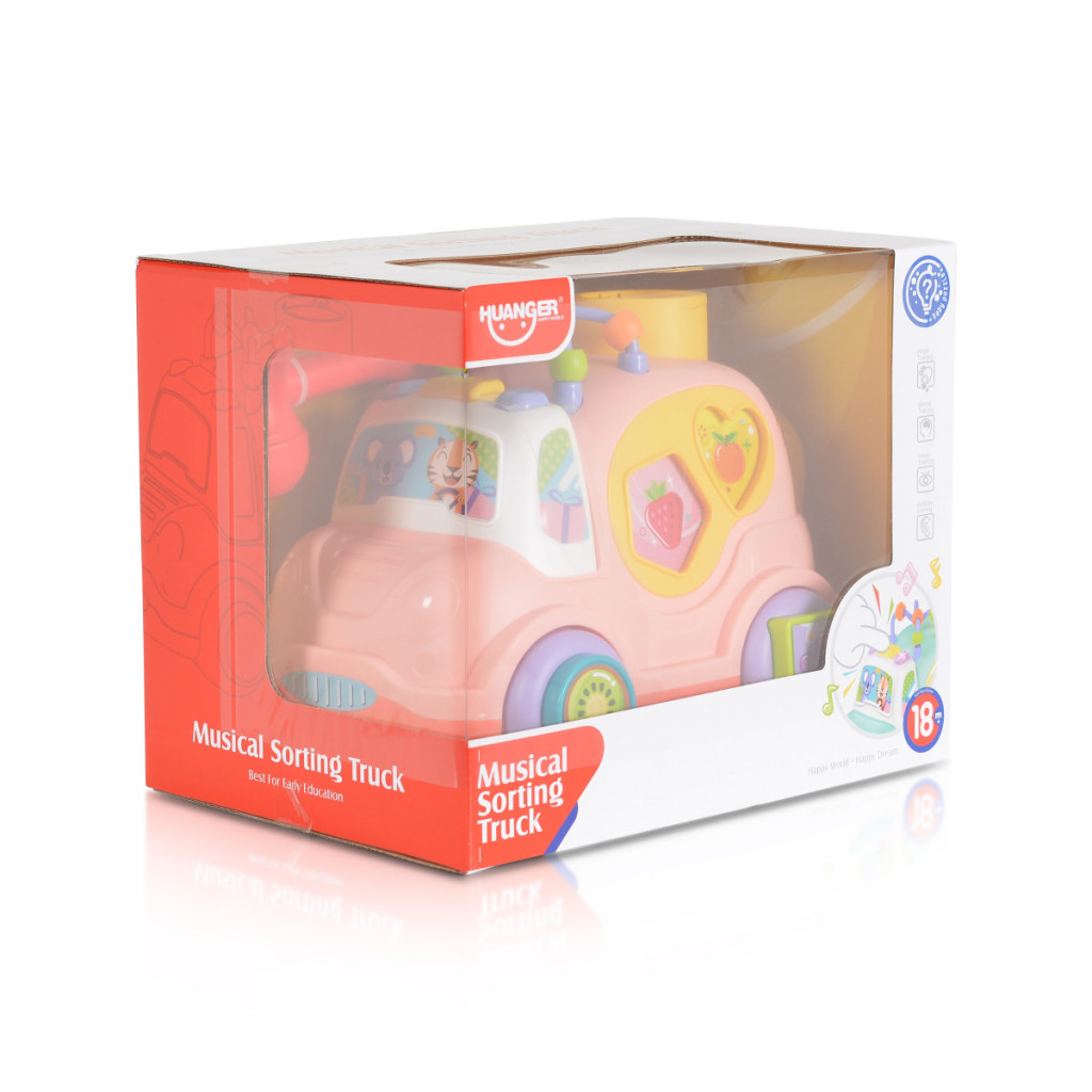 Huanger zenélő formabedobós műanyag kisautó - Rózsaszín