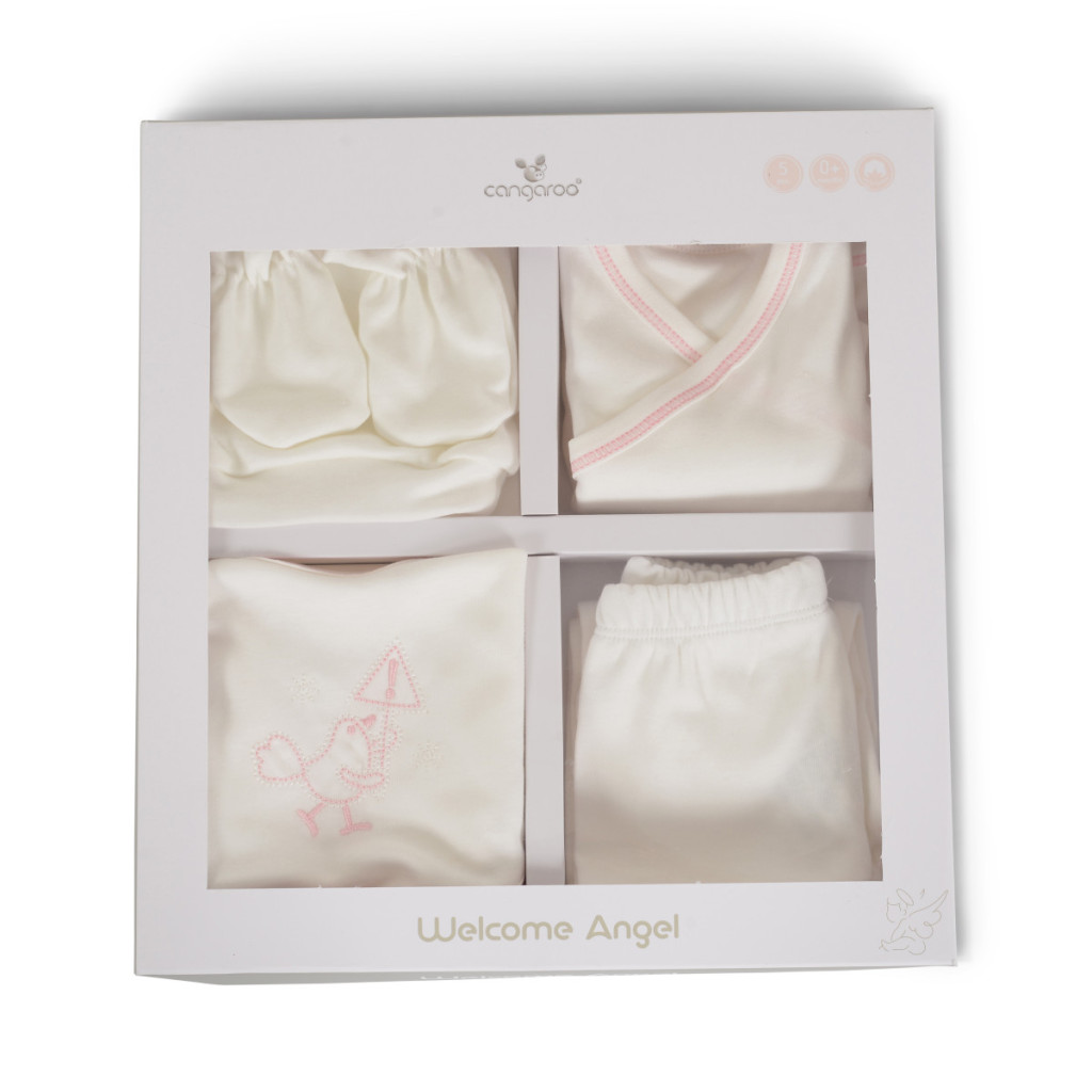 Cangaroo Welcome Angel pamut 5 részes baba szett (56) fehér/rózsaszín