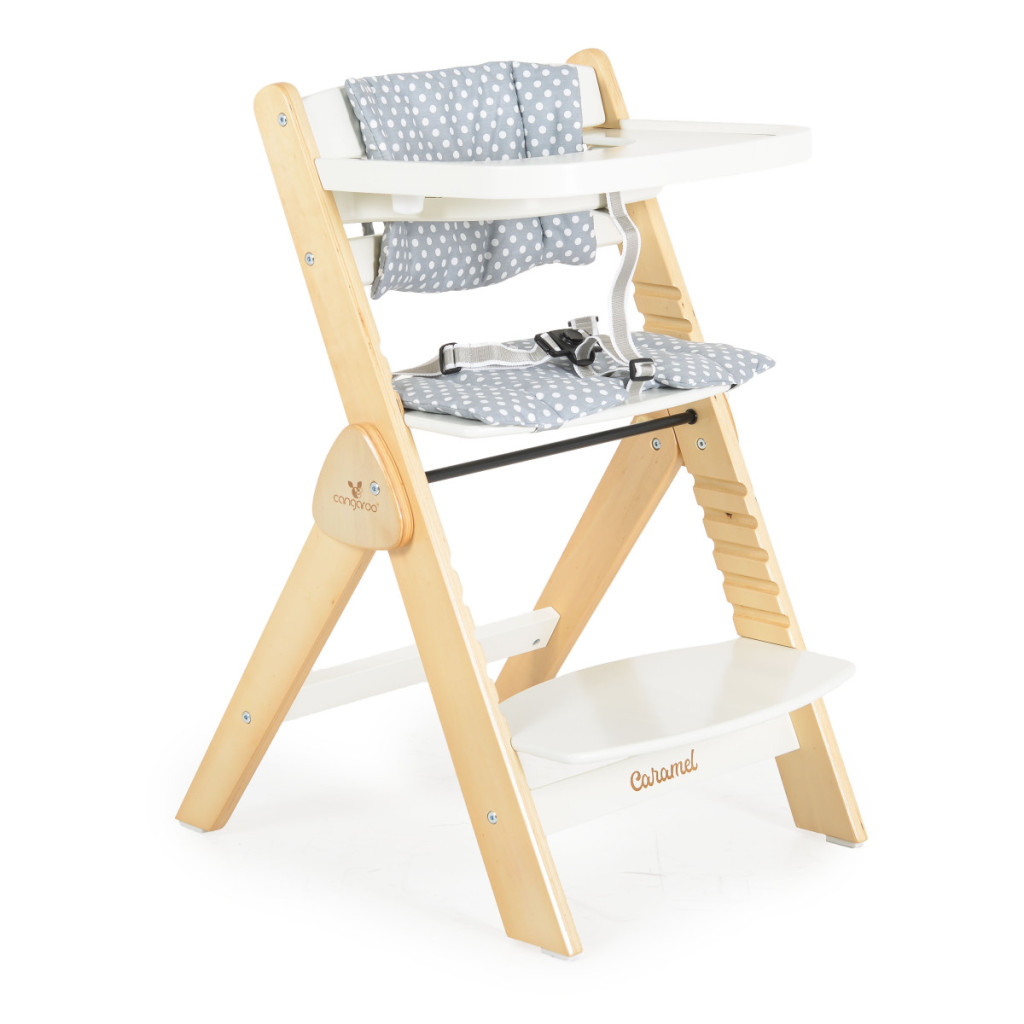A Caramel fa etetőszék 3 ülés- és 6 lábtámasz-szinttel rendelkezik.