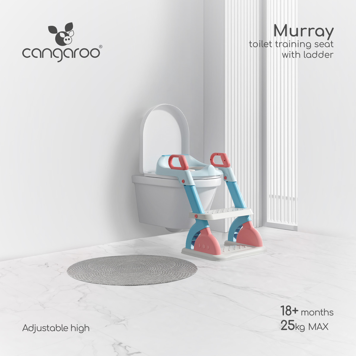 A 38 és 45 cm között állítható magasságnak köszönhetően alkalmas a különböző WC-kagylókhoz (37-42 cm átmérővel).