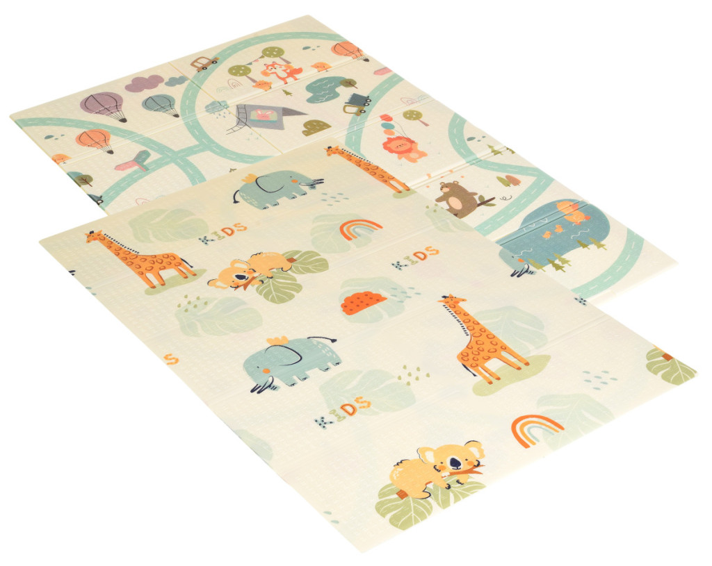 A játszószőnyeg mindkét oldalon vidám motívumokkal ellátott nyomtatással, csúszásmentes felületkezeléssel, nagyszerű szigeteléssel és hangszigeteléssel rendelkezik, vízálló, puha felületű, rugalmas, mégis méretstabil, összehajtható, és mindenekelőtt biztonságot nyújt a gyermekeknek játék közben.