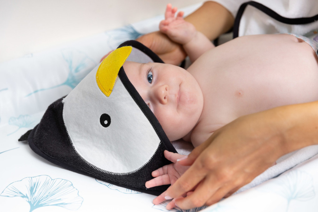 Kapucnis fürdőlepedő 100*100 cm - fehér pingvin